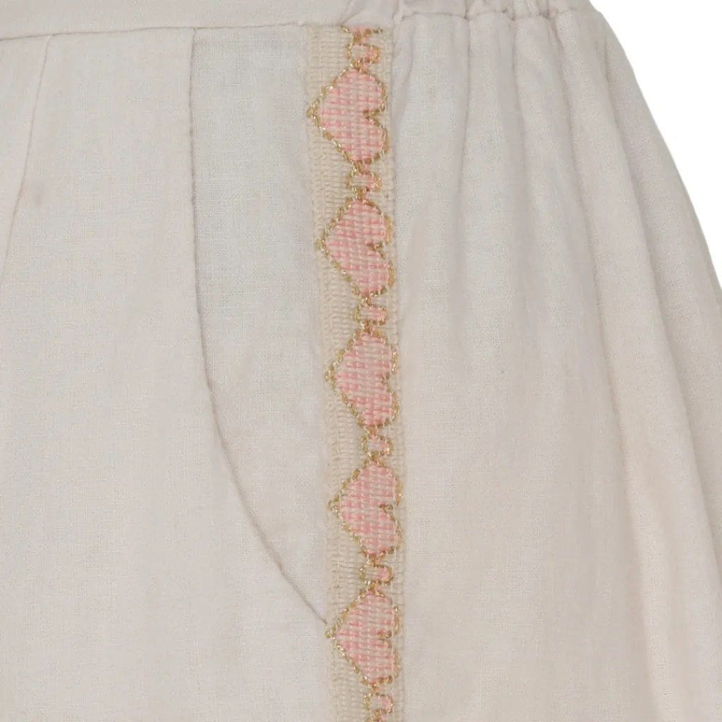 Smarte shorts i hørblanding med mønster på siderne.