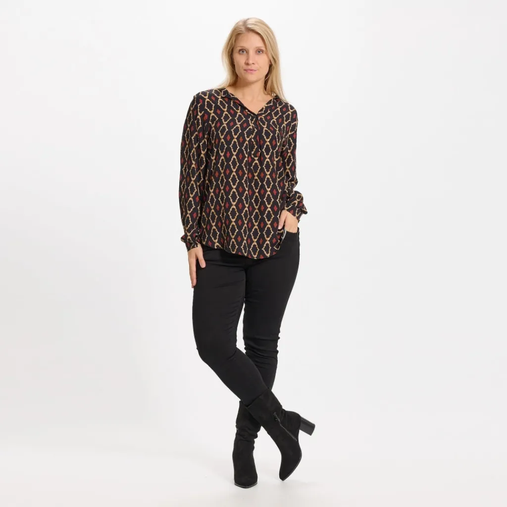 Marta du Chateau tunika i blød og behagelig kvalitet. Blusen er med v udskæring og har knapper foran.