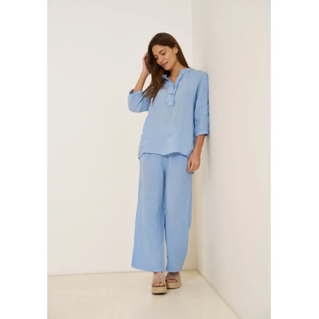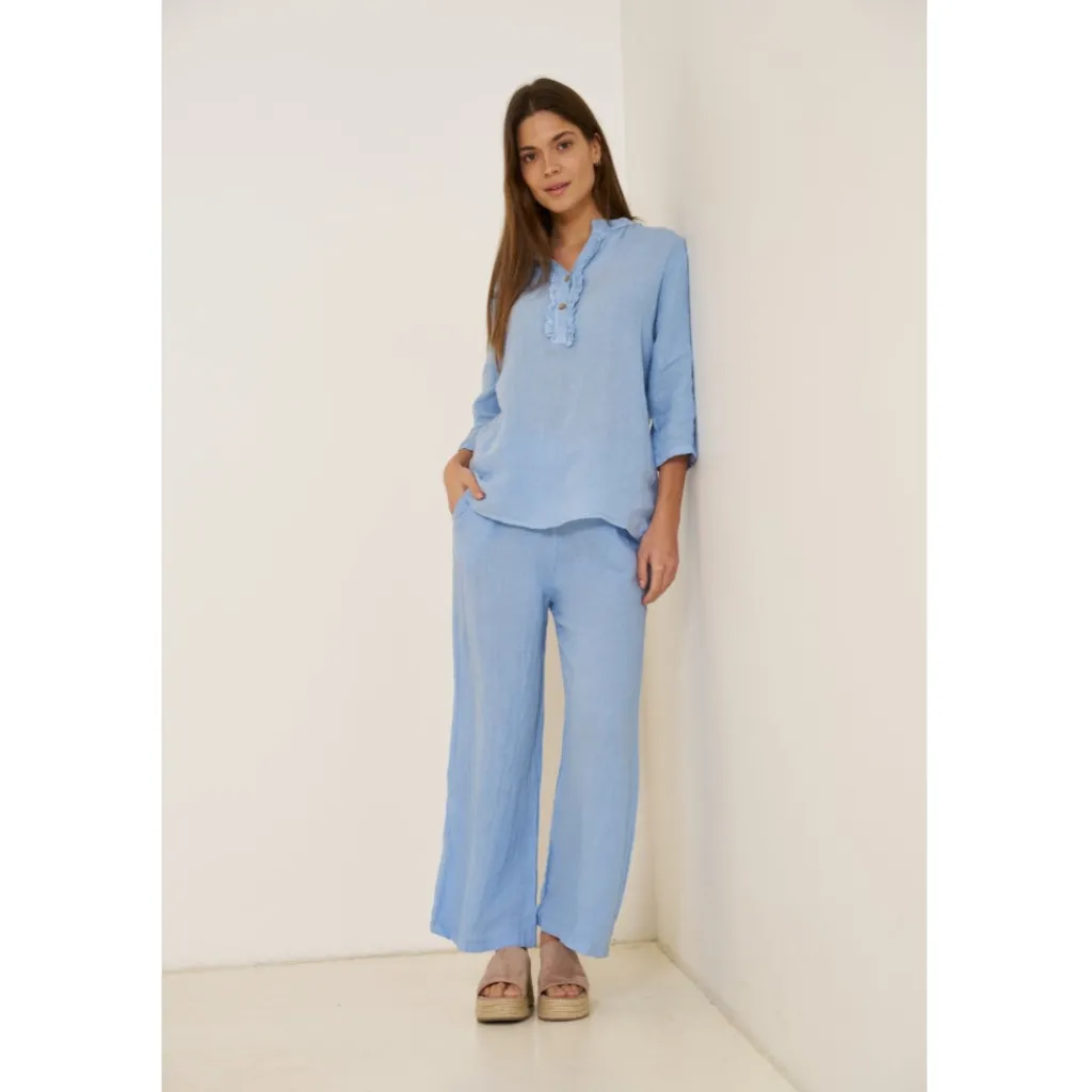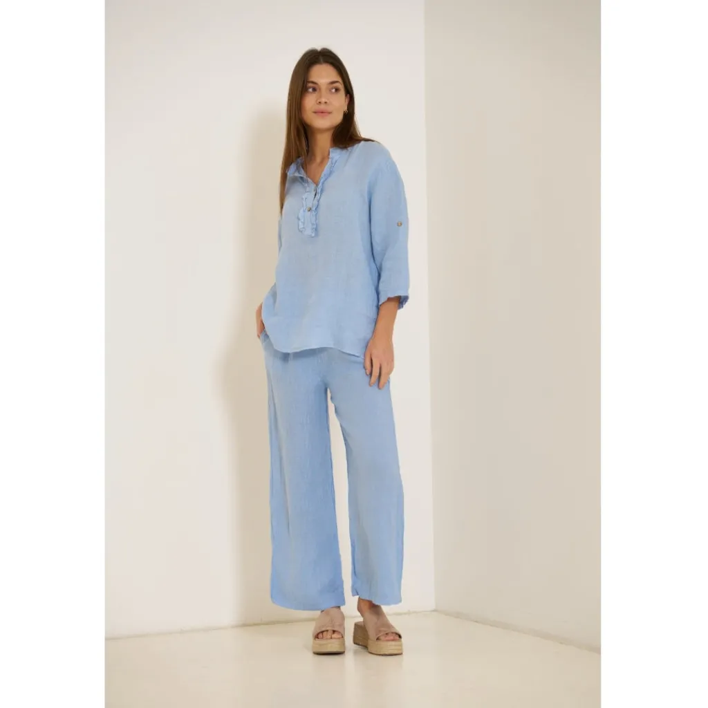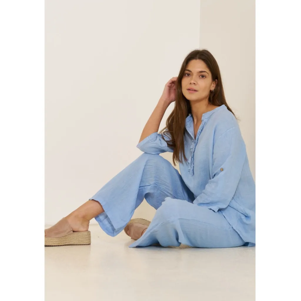 Sød hør bluse fra Marta Du Cháteau med knapper foran samt flæse detalje.