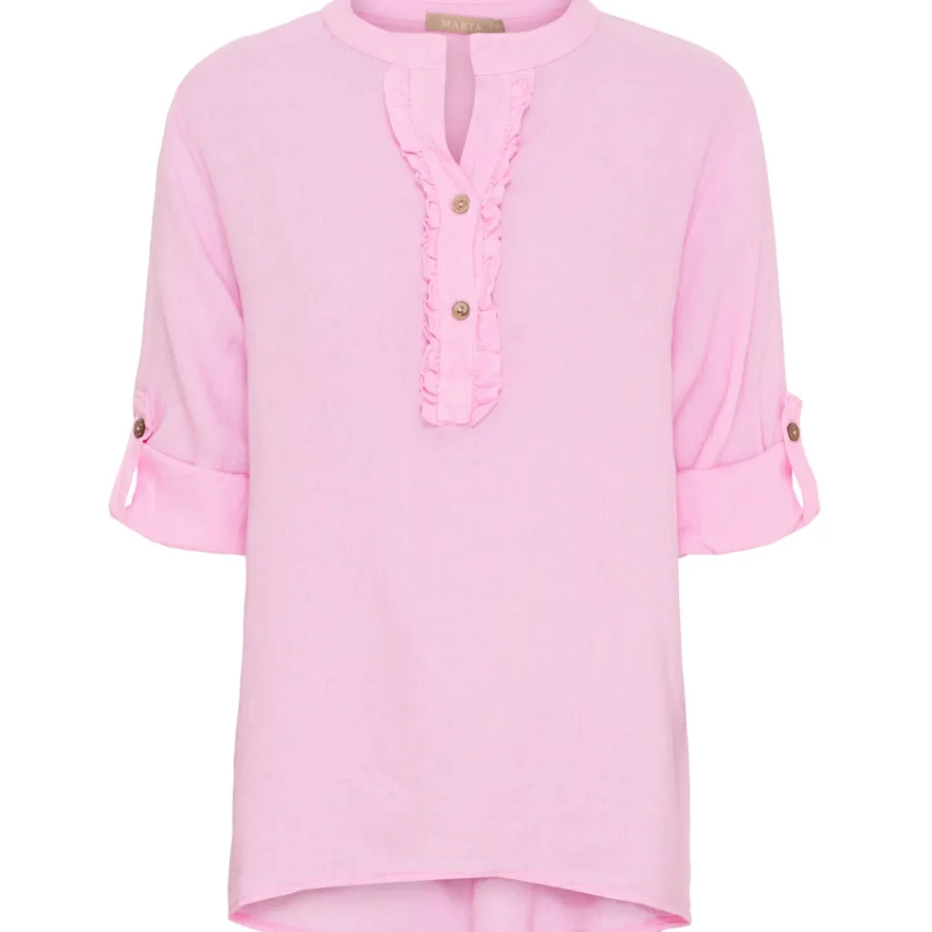Sød hør bluse fra Marta Du Cháteau med knapper foran samt flæse detalje.