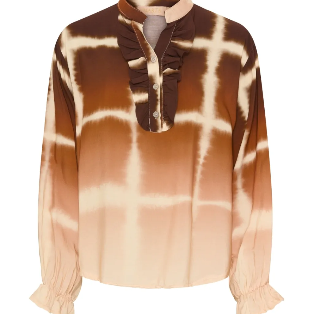 Smuk printet skjorte fra Marta Du Cháteau med knapper foran og elastik i ærmerne. Ideel både til hverdagsbrug og finere brug.