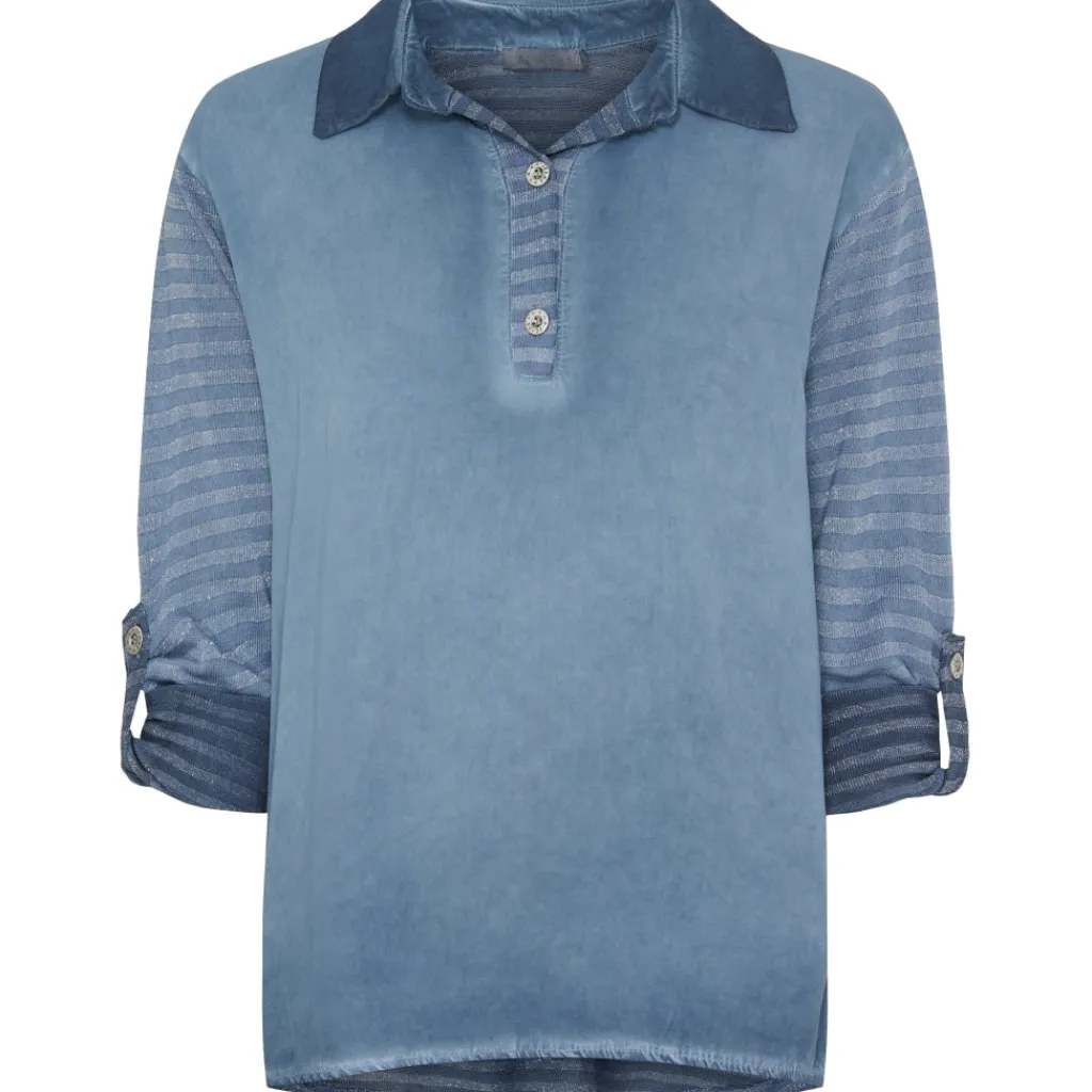 Smart bluse med glimmerdetaljer og ærmer der kan foldes op.