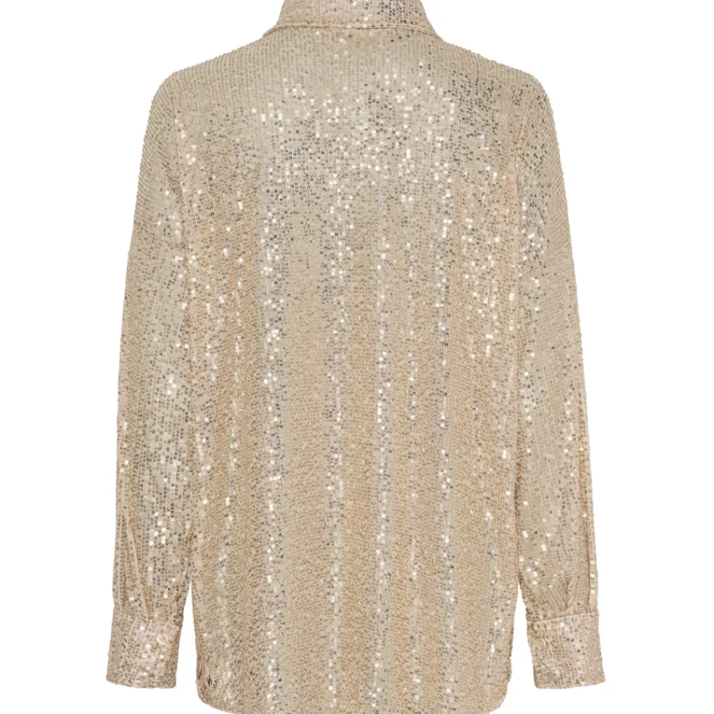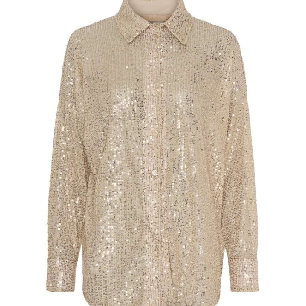 Smuk glimmerskjorte med sofistikerede knapper langs fronten. Skjorten er ideel til festlige begivenheder, evt. med en nederdel og et par stiletter.
