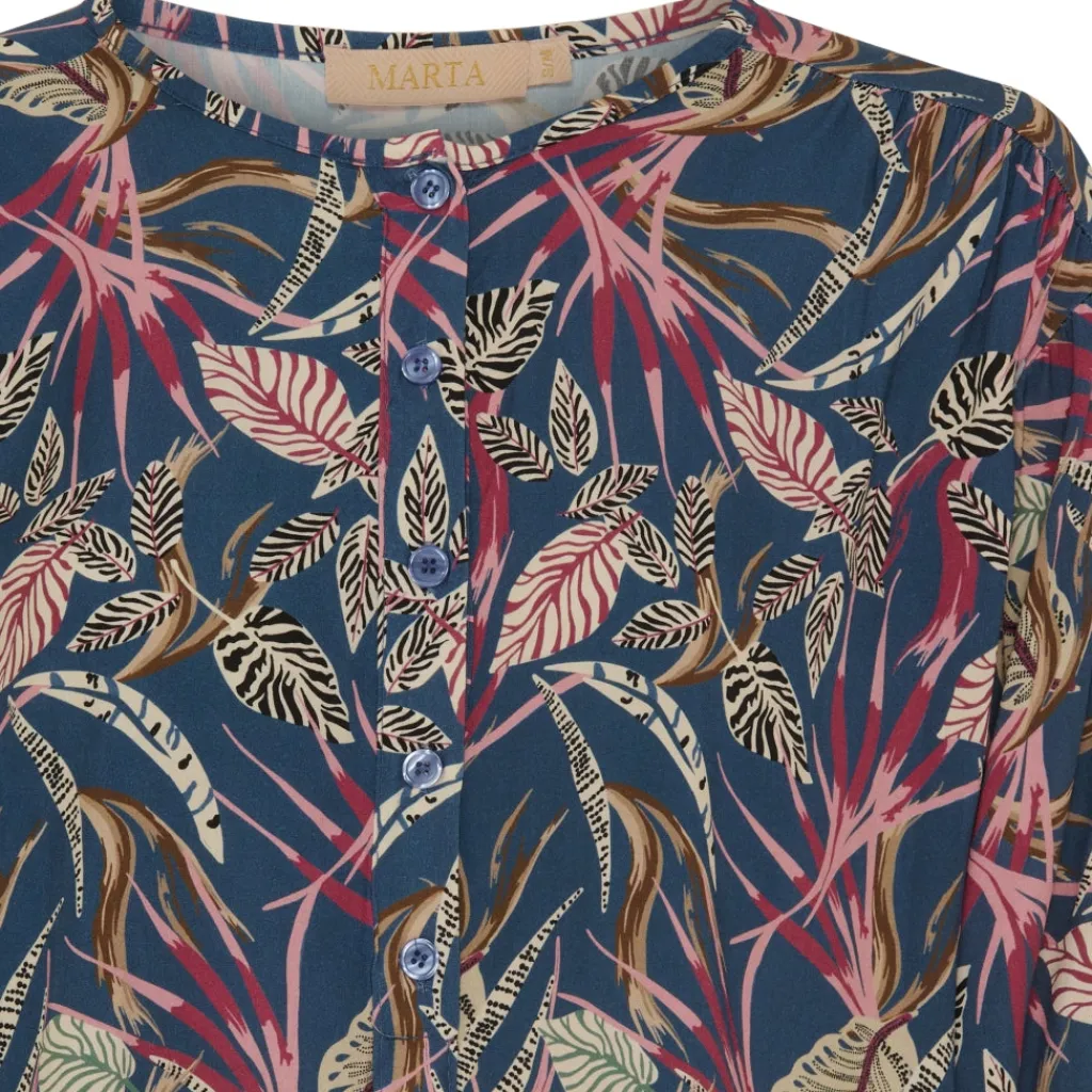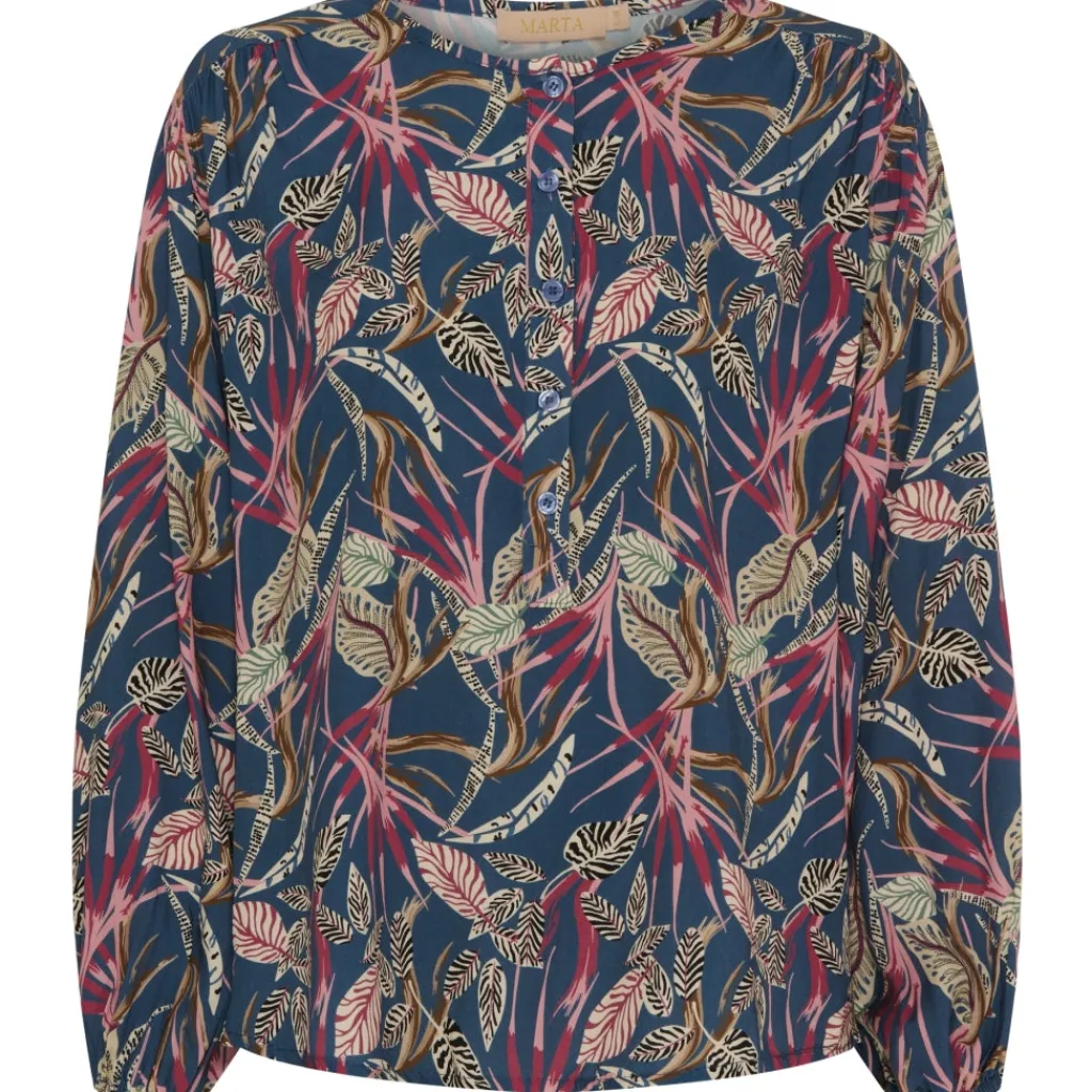 Printet bluse fra Marta Du Cháteau med rund hals, knapper foran samt elastik ved ærmerne.