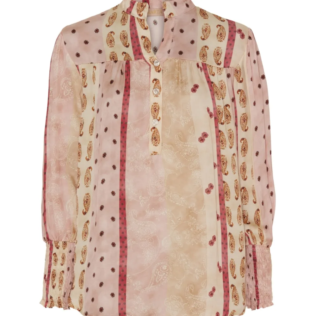 Smuk bluse med smock ved ærmerne.