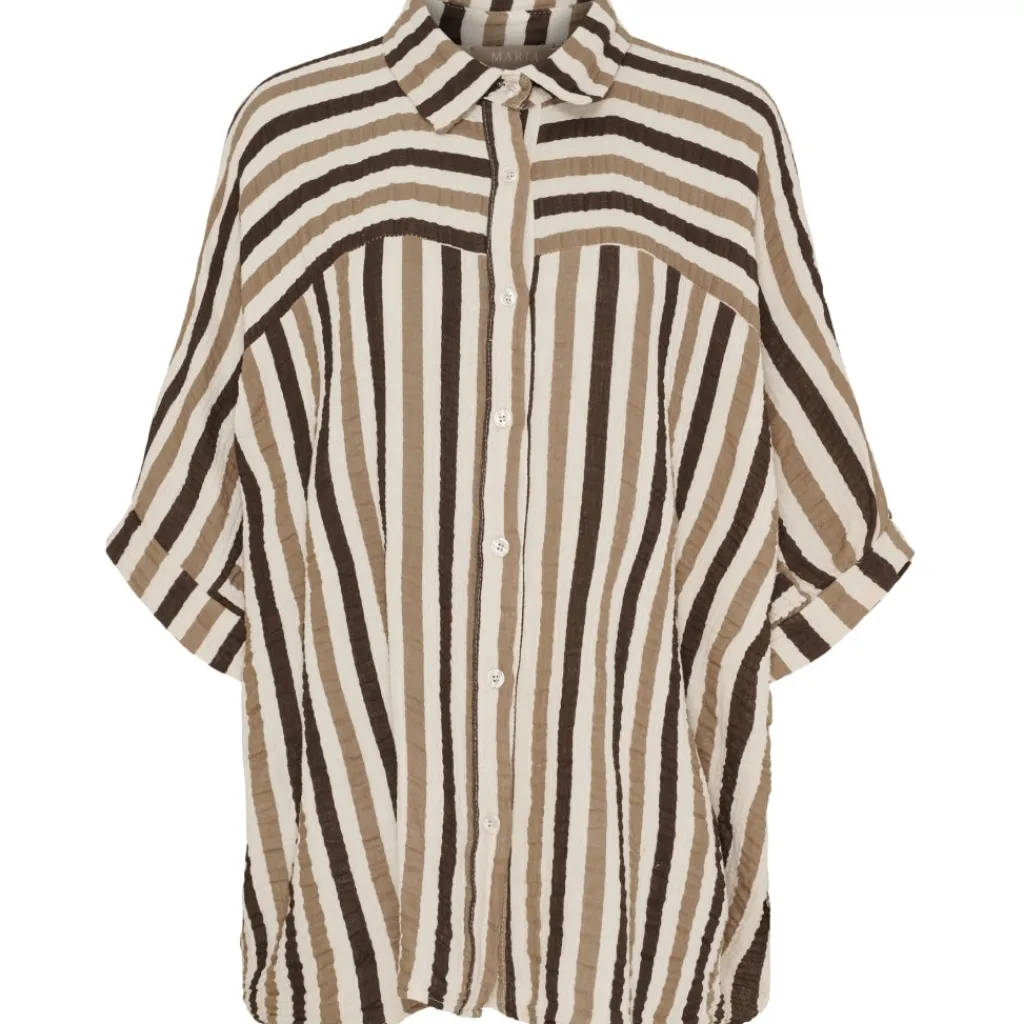 Klassisk skjorte fra Marta Du Château i en flot strib. Skjorten har 3/4 ærmer, gennemgående knapper og har en fin krave. Ideel til hverdag med et par jeans og sneakers.