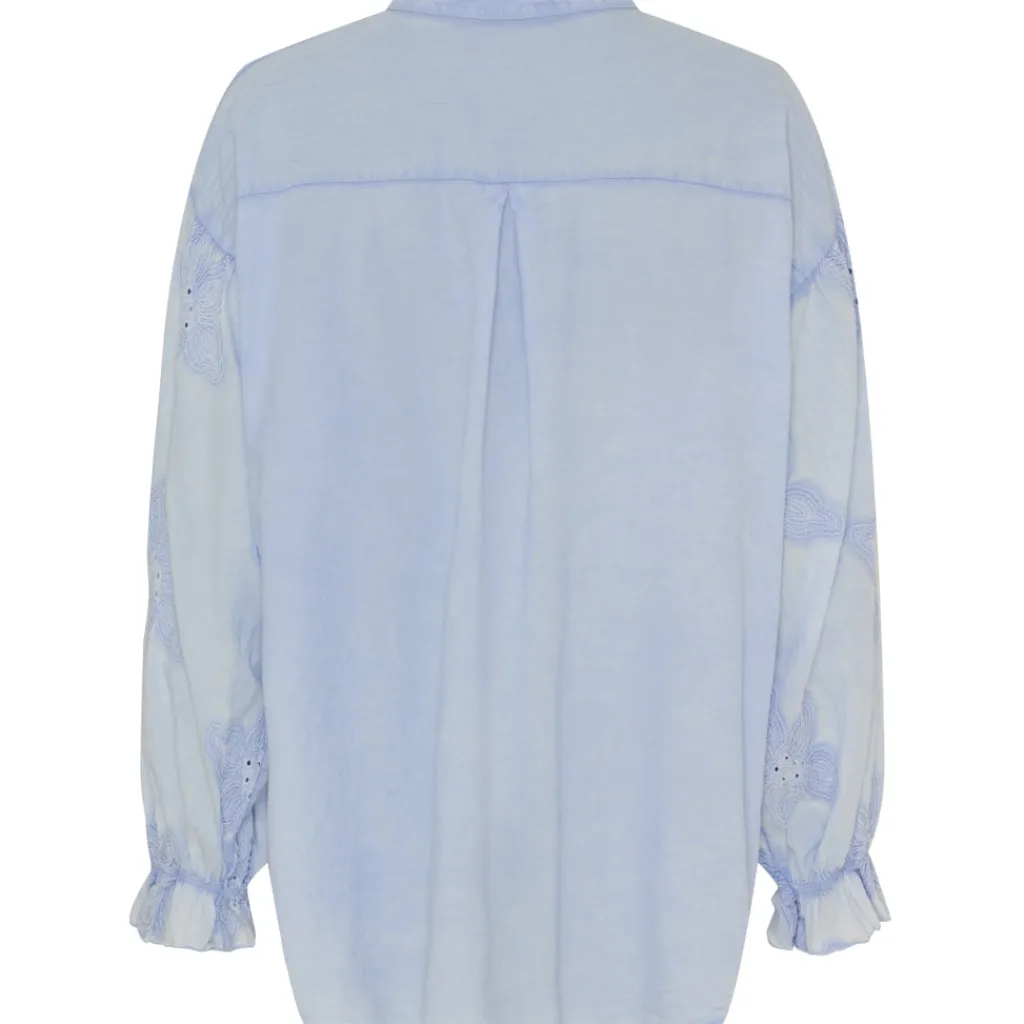 Sød skjorte med blomsterdetaljet på ærmerne.