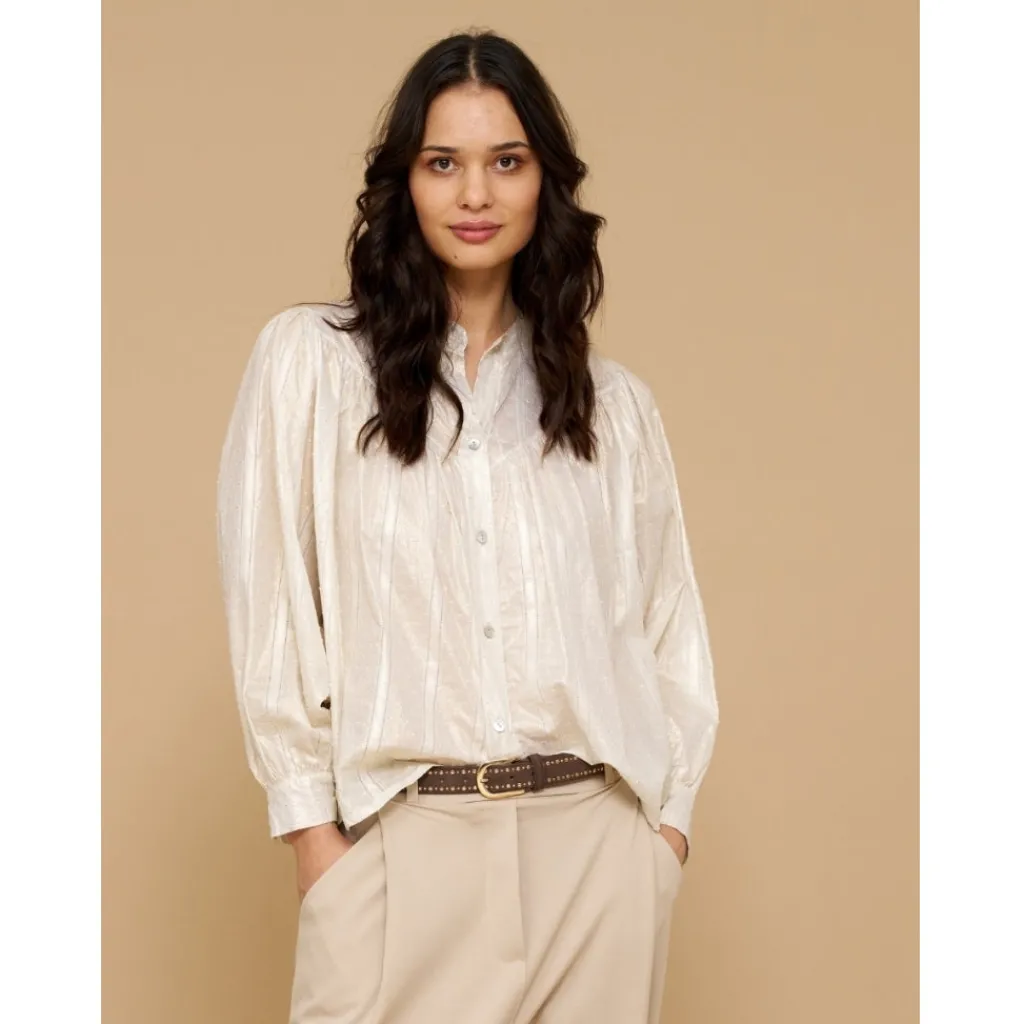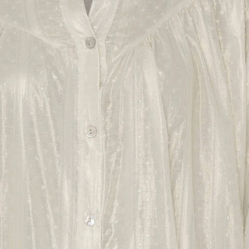Den fineste skjorte i shiny look. Skjorten kan styles med et par fine blazerbukser, og stiletter for en fin festlook.