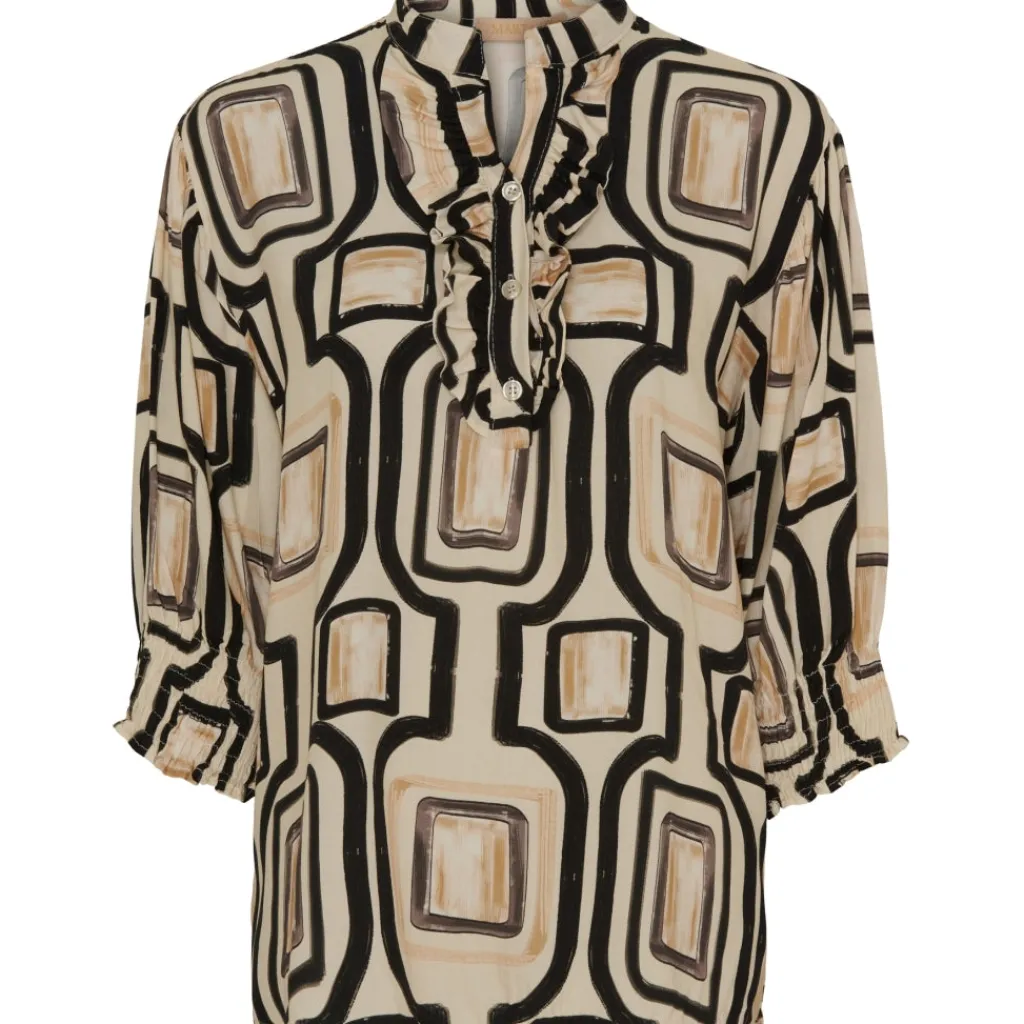 Fin bluse med flæser og smock ved ærmerne. Ideel til hverdag med et par jeans og sneakers til.