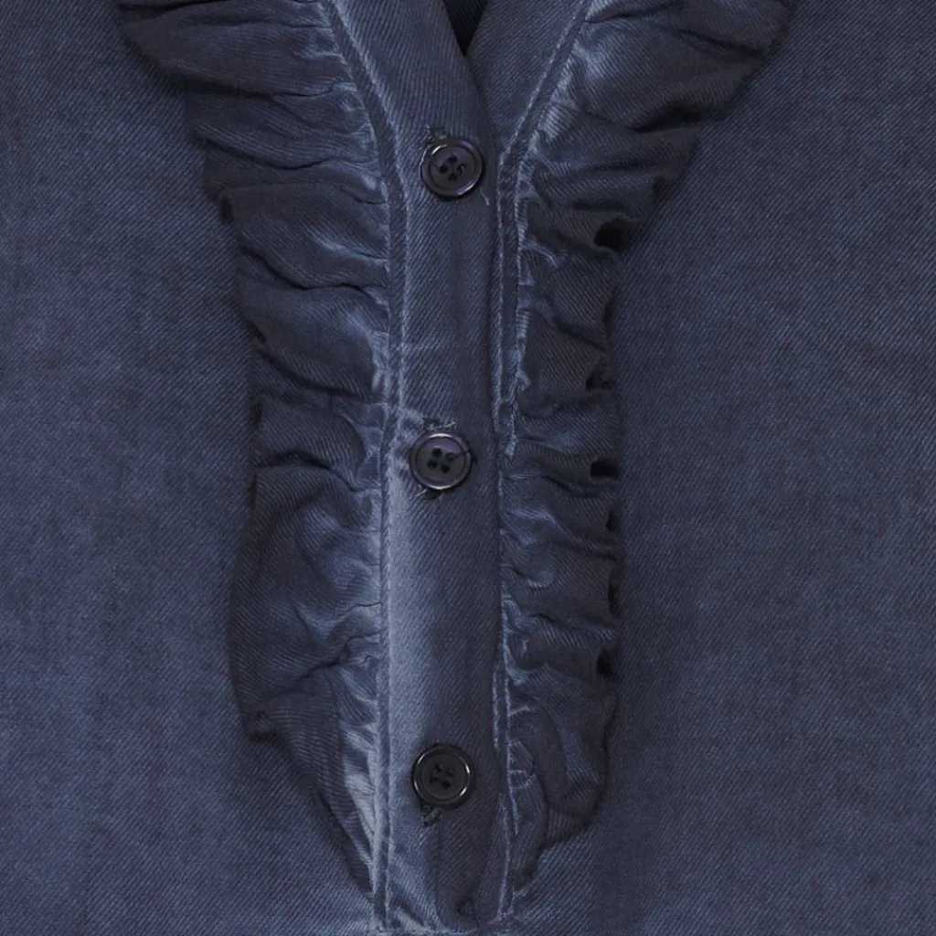Fin bluse med flæser og smock ved ærmerne. Ideel til hverdag med et par jeans og sneakers til.