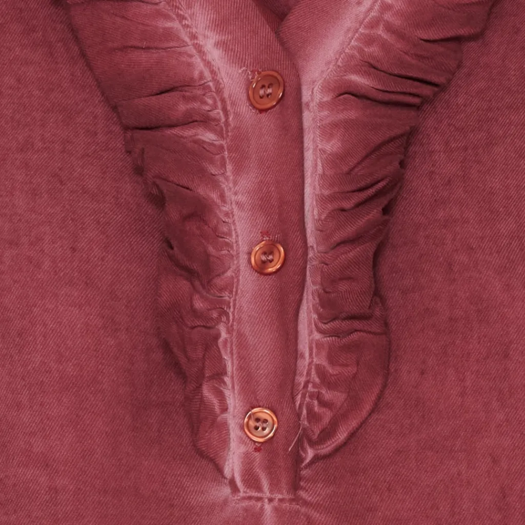 Fin bluse med flæser og smock ved ærmerne. Ideel til hverdag med et par jeans og sneakers til.