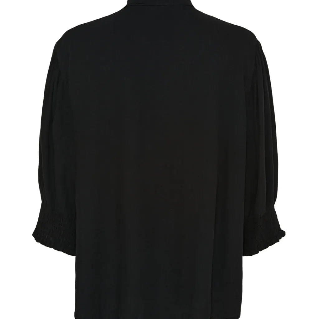 Fin bluse med flæser og smock ved ærmerne. Ideel til hverdag med et par jeans og sneakers til.