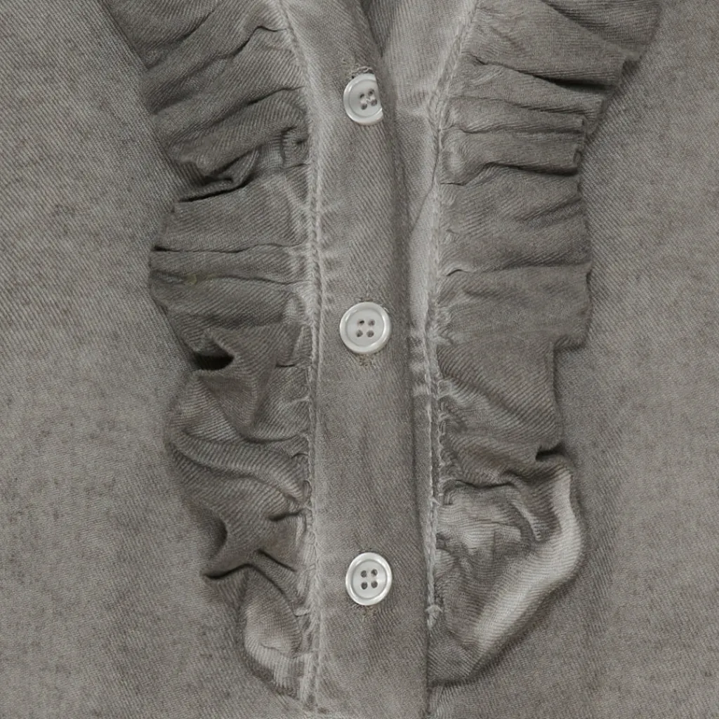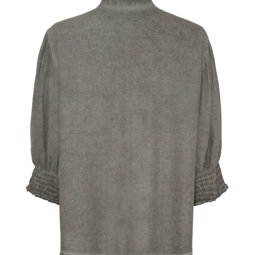 Fin bluse med flæser og smock ved ærmerne. Ideel til hverdag med et par jeans og sneakers til.