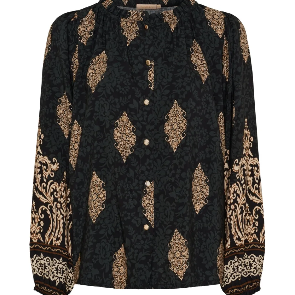 Smuk skjorte med guldknapper fra Marta du Château. Kan både bruges til hverdag og finere brug.