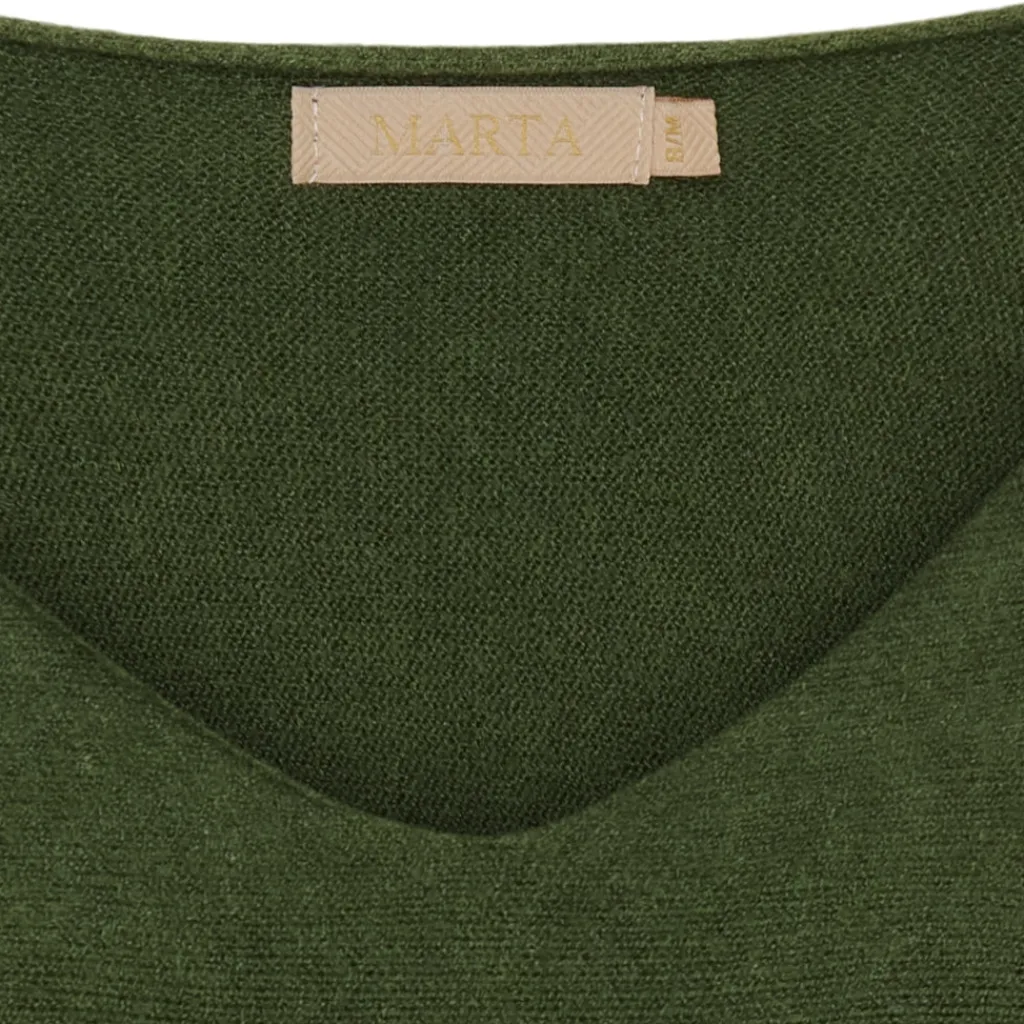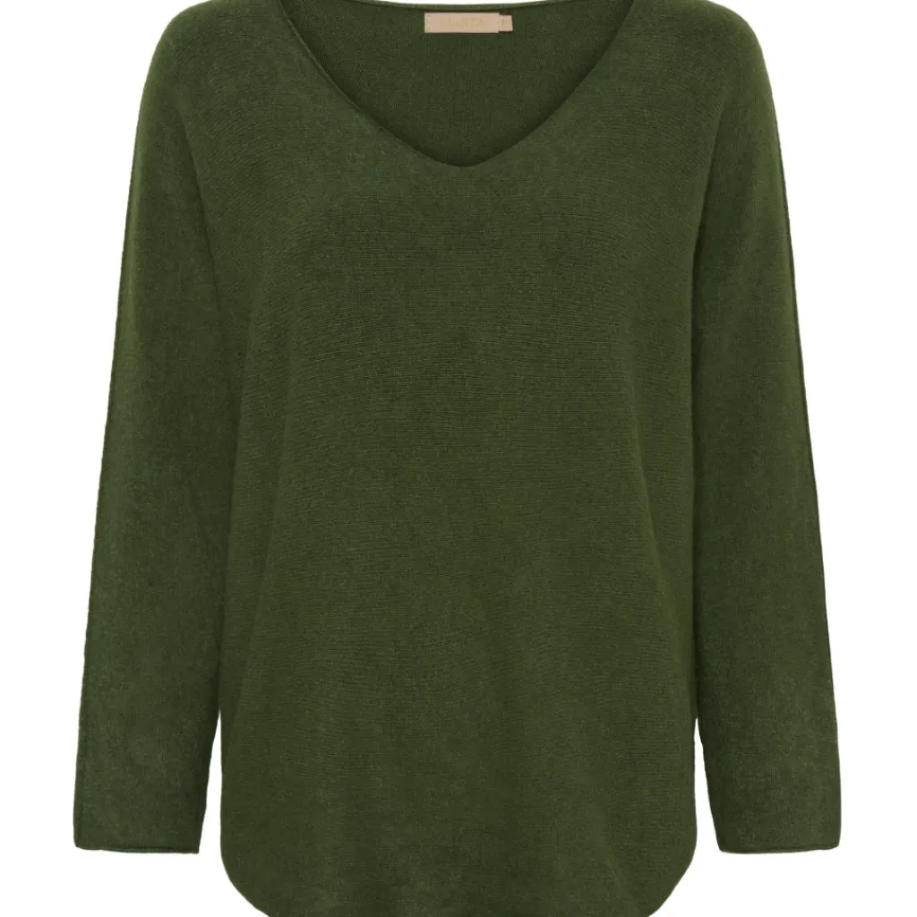 Dejlig blød striktrøje med v-hals. Strikken er super komfortabel og kan både bruges for sig selv eller med en blondetop under for en fin detalje ved halsen.