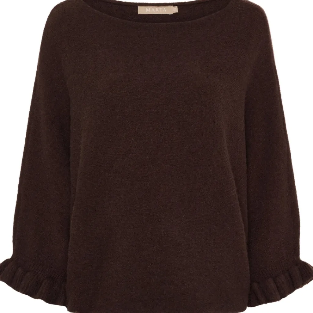 Elegant og tidløs striktrøje fra Marta du Château. Striktrøjen har lange ærmer med flæse-detalje ved ærmekant. Den kan bruges med en nederdel eller et par jeans her til de koldere dage.