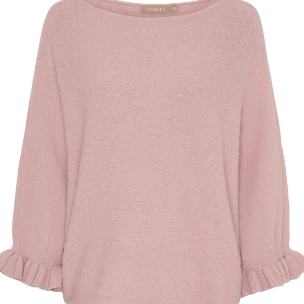 Elegant og tidløs striktrøje fra Marta du Château. Striktrøjen har lange ærmer med flæse-detalje ved ærmekant. Den kan bruges med en nederdel eller et par jeans her til de koldere dage.