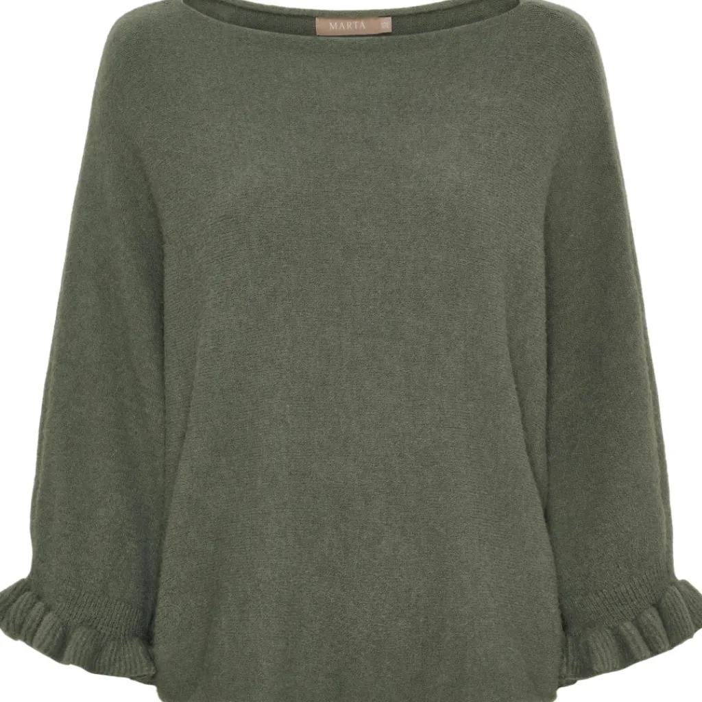 Elegant og tidløs striktrøje fra Marta du Château. Striktrøjen har lange ærmer med flæse-detalje ved ærmekant. Den kan bruges med en nederdel eller et par jeans her til de koldere dage.