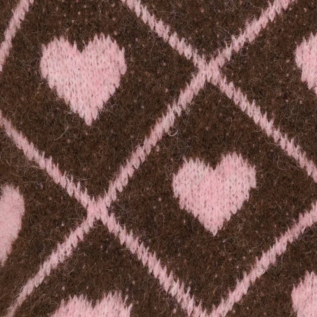 Klassisk, lækker striktrøje fra Marta du Château i et fint hjerte print. Strikken har ribkant ved ærme, hals og nederst på trøjen. Kan styles med alt i garderoden – helt ideel til de kolde efterårsdage.