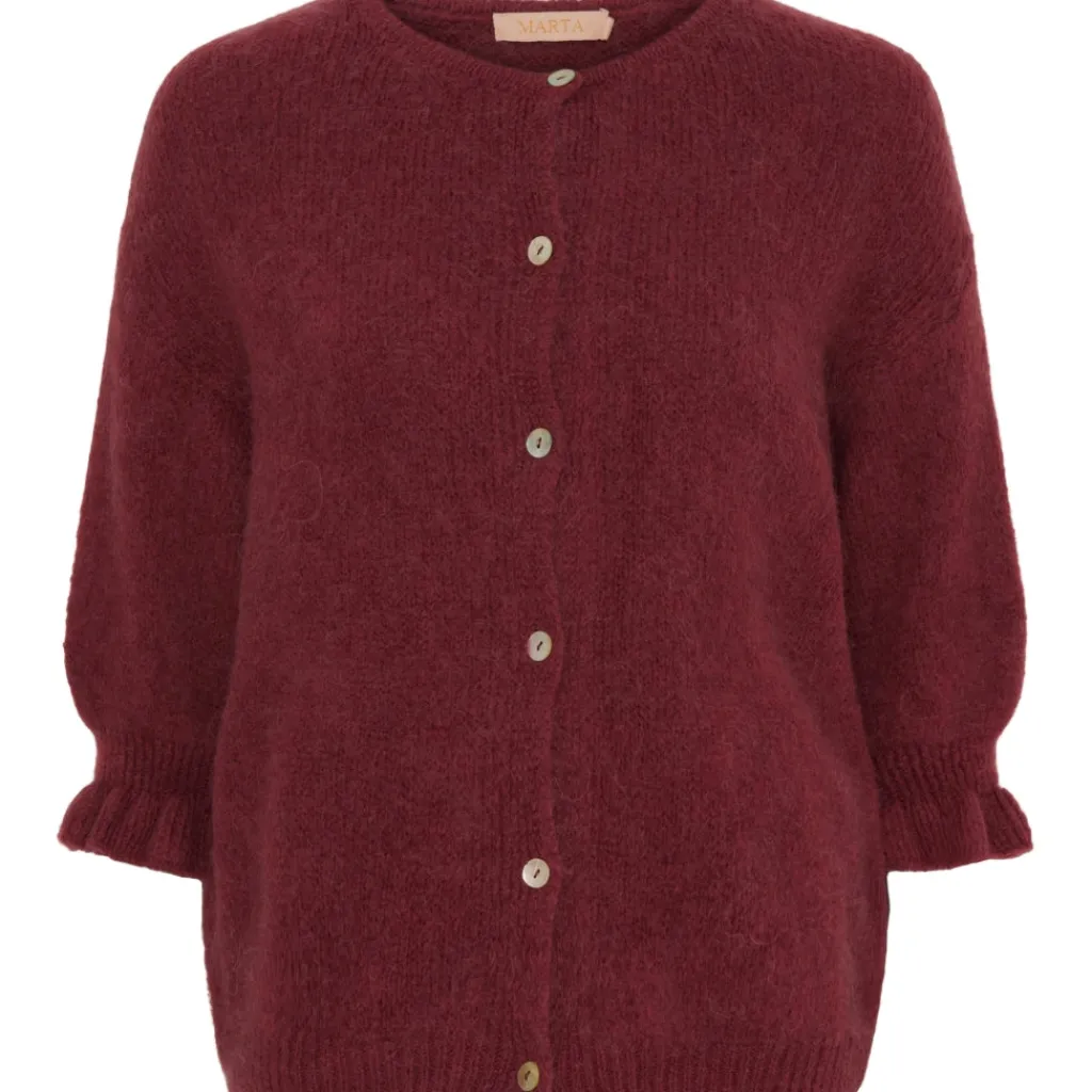 Sød strikket cardigan fra Marta med flæsedetaljer ved ærme. Cardiganen har fine knapper langs fronten og er med 3/4 ærmer. Helt perfekt til hverdagsbrug. Style den med både jeans, habitbukser og nederdele – mulighederne er mange.