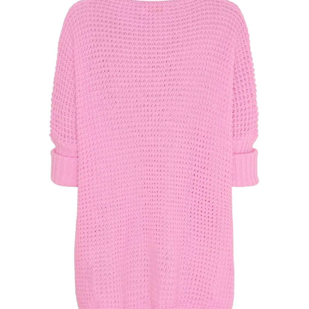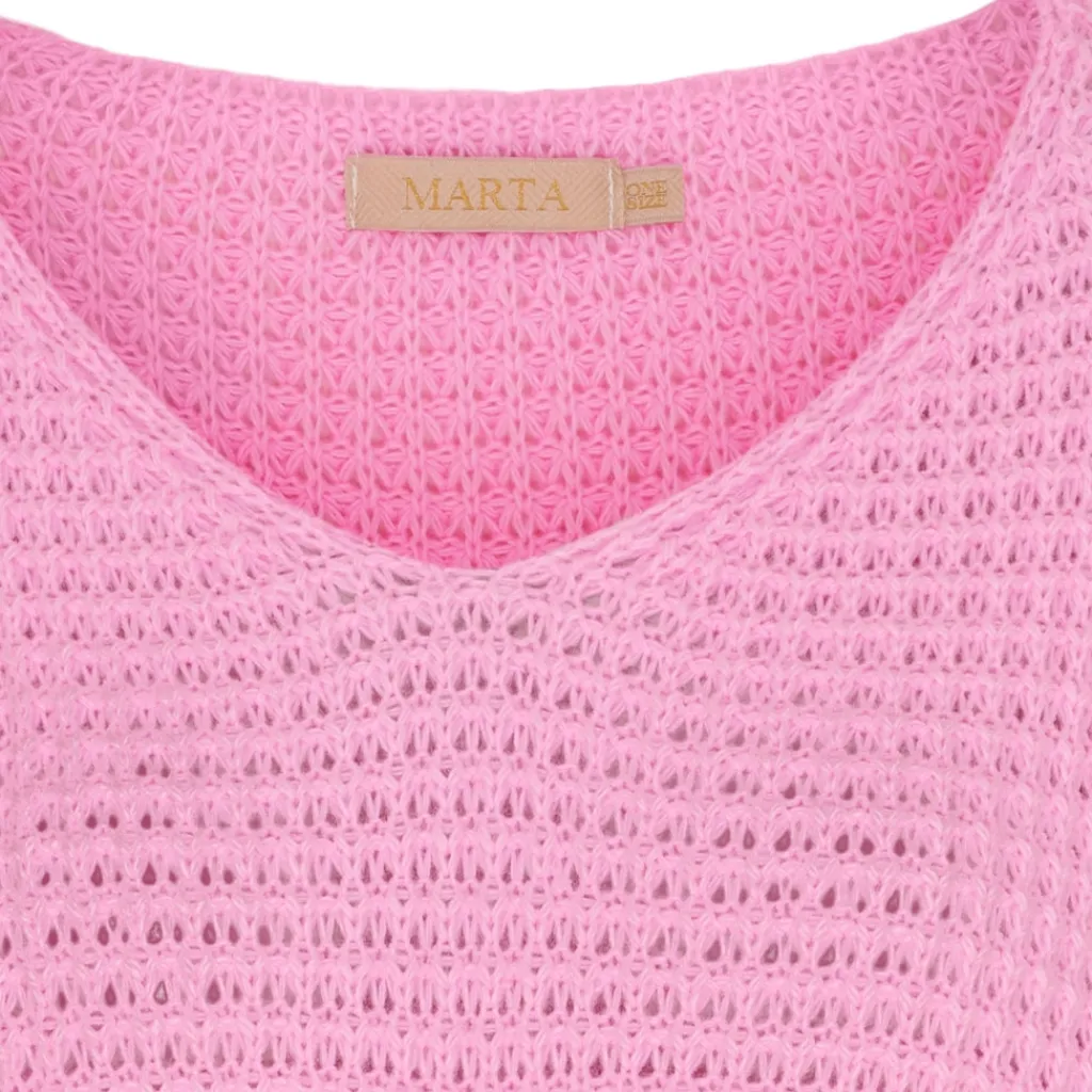 Lækker striktrøje med opsmøgede ærmer fra Marta du chateau. Længere bagtil end foran og med rund hals.