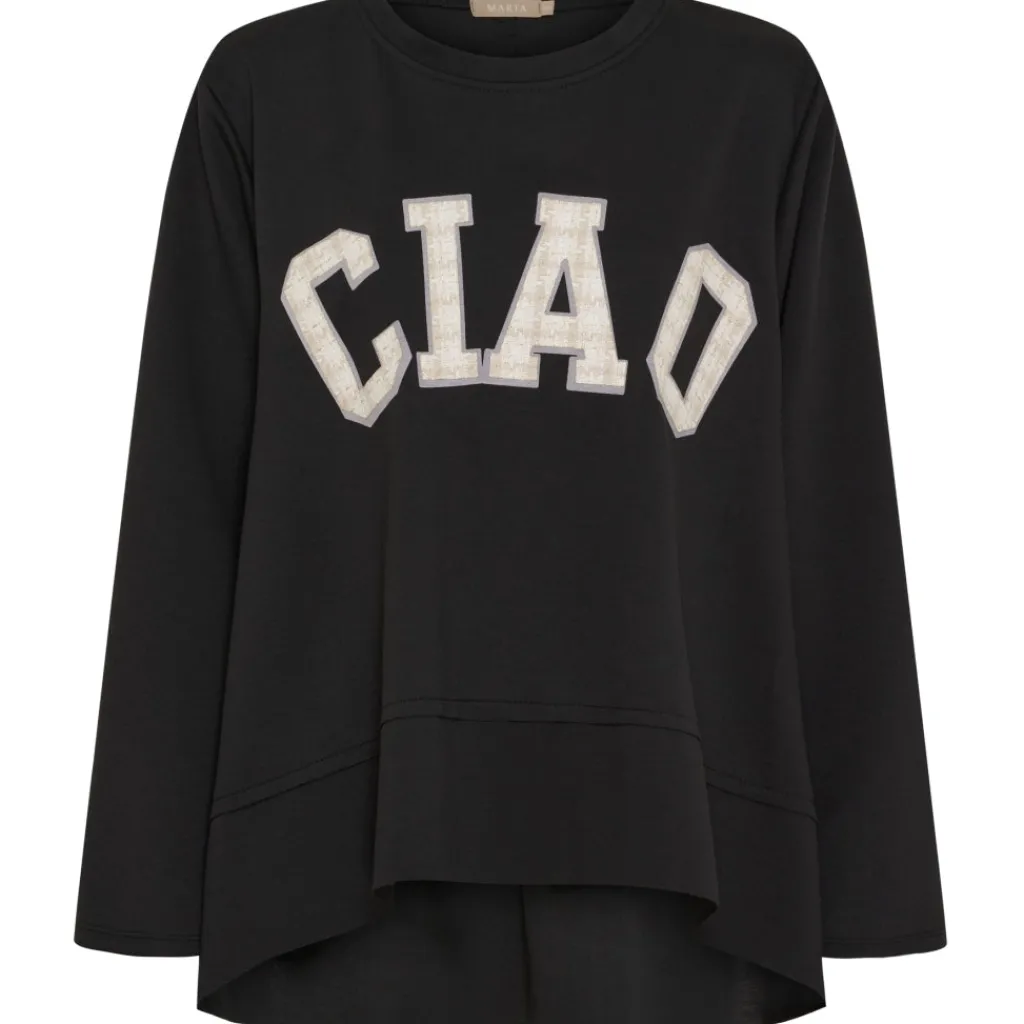 Fin sweatshirt fra Marta Du Château med print henover brystet. Den er længere bagtil end foran hvilket giver en super sej effekt. Brug den til både leggings og jeans, og tilføj sneakers for et fint, afslappet hverdagslook.