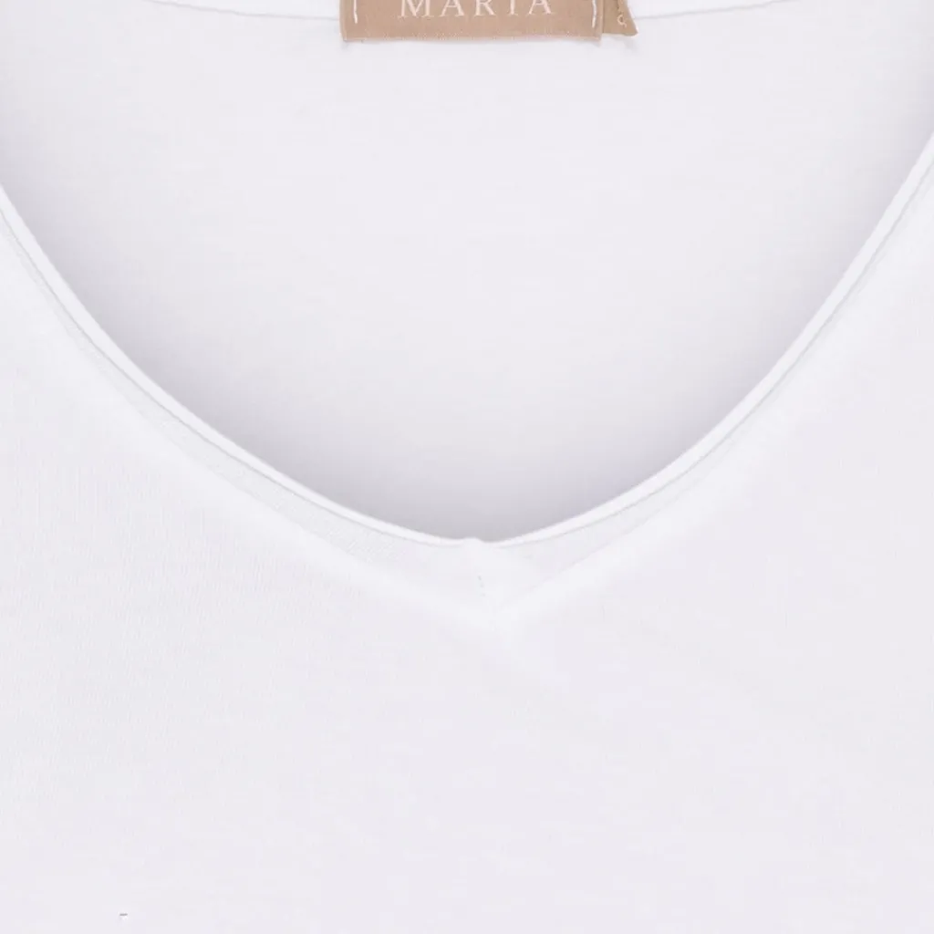 Fin t-shirt med v-neck med smukt snit hvor den er længere bagtil.