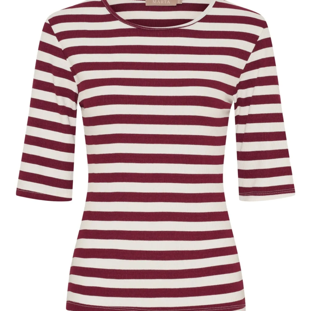 Basis stribet bluse fra Marta du Château med 3/4 ærmer. Ideel til hverdagsbrug med et par jeans, sneakers eller støvler. Brug den også med en cardigan på de kolde dage.