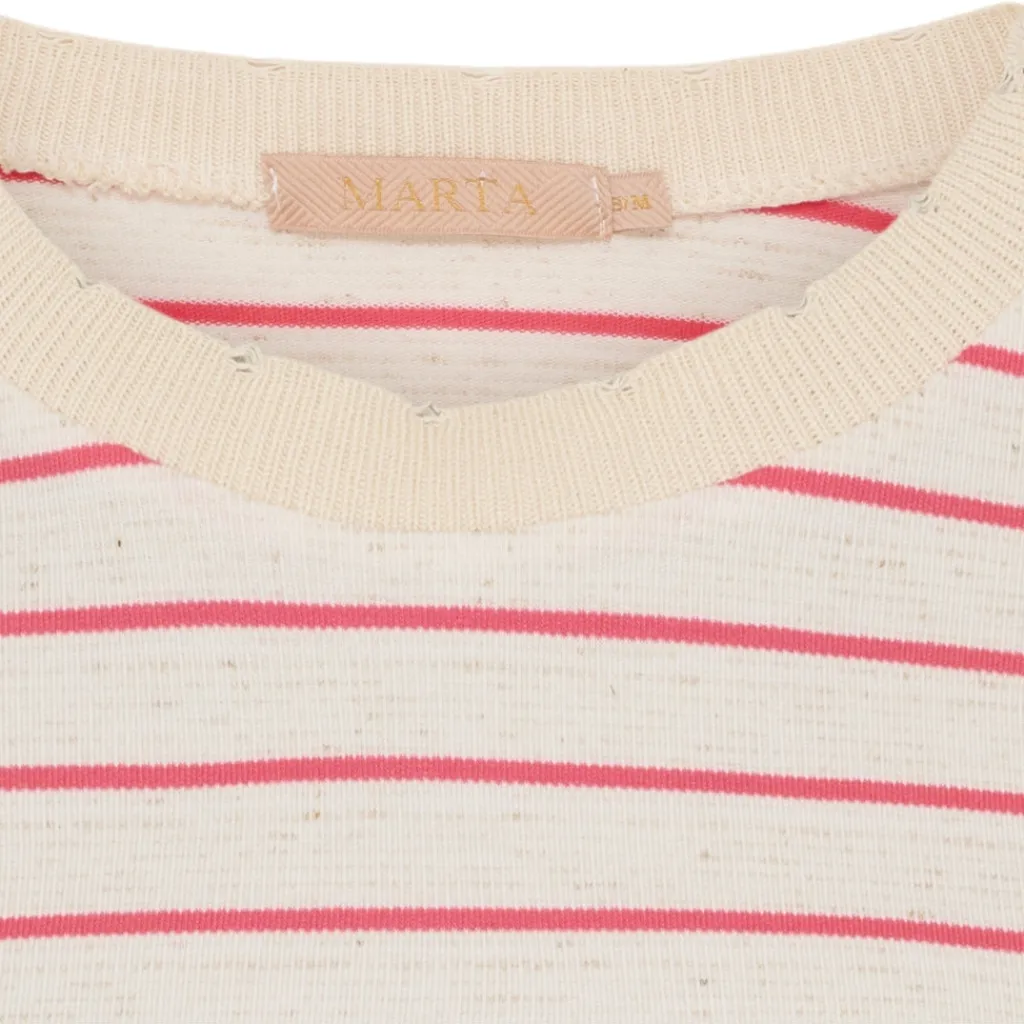 Fin stribet t-shirt fra Marta Du Château – en klassisk og alsidig model, der passer perfekt til både jeans og nederdele. På kølige dage kan du nemt style den med en cardigan.