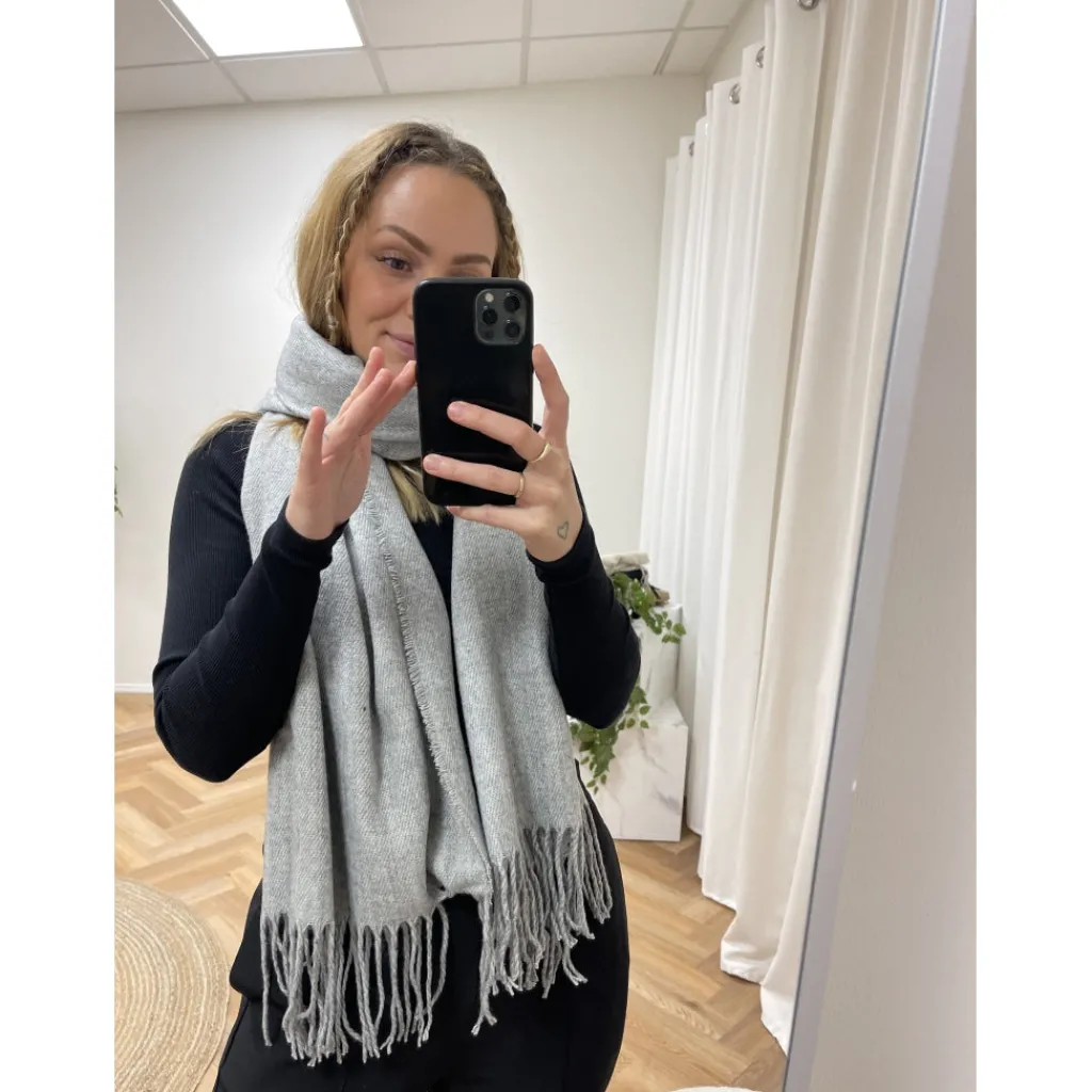 Skønt tørklæde fra Marta Du Cháteau med frynser og logo.