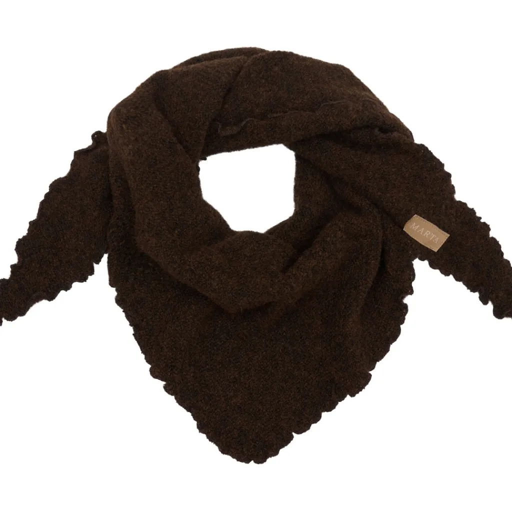 Super blødt og lækkert tørklæde fra Marta Du Château. Den er trekant-formet, og har en bølget kant. Helt perfekt til både frakker, jakker og striktrøjer.