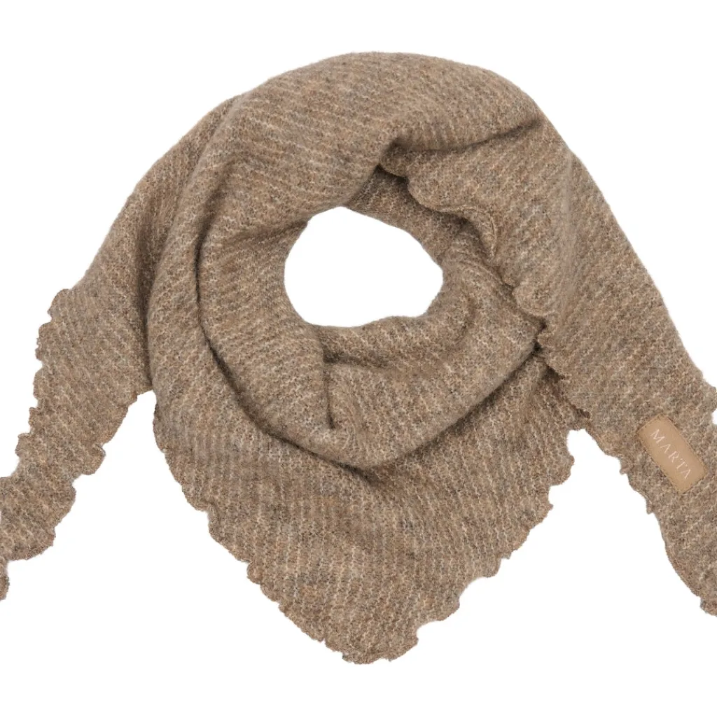 Super blødt og lækkert tørklæde fra Marta Du Château. Den er trekant-formet, og har en bølget kant. Helt perfekt til både frakker, jakker og striktrøjer.
