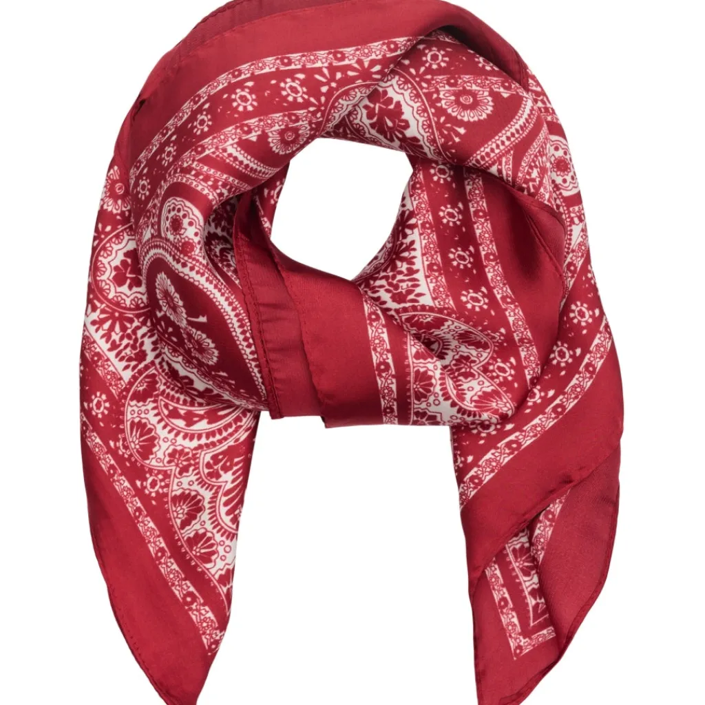 Elegant tørklæde med et moderne mønster. Ideelt til at pifte ethvert outfit op, uanset om det bruges om halsen, som hårpynt eller på tasken. En uundværlig accessory i garderoben efter vores mening.