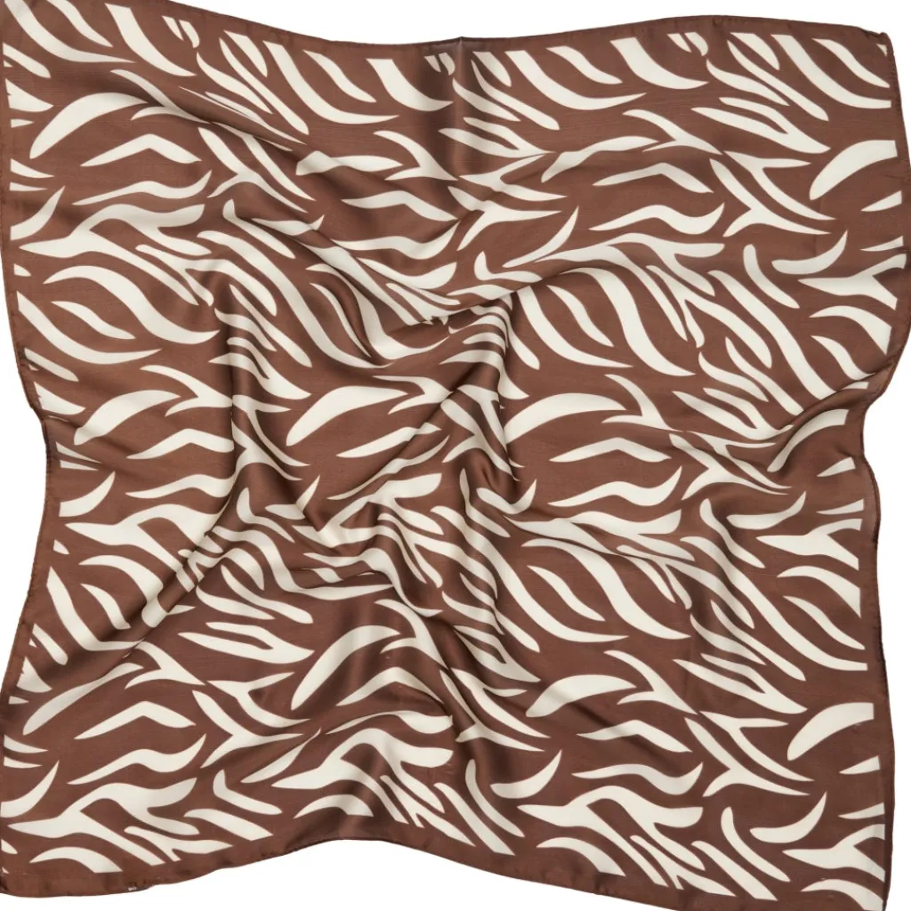 Elegant tørklæde med et moderne mønster. Ideelt til at pifte ethvert outfit op, uanset om det bruges om halsen, som hårpynt eller på tasken. En uundværlig accessory i garderoben efter vores mening.