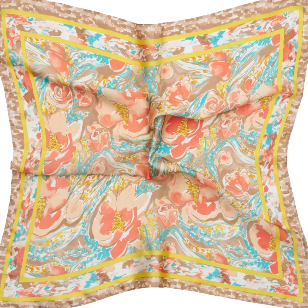 Elegant tørklæde med et moderne mønster. Ideelt til at pifte ethvert outfit op, uanset om det bruges om halsen, som hårpynt eller på tasken. En uundværlig accessory i garderoben efter vores mening.
