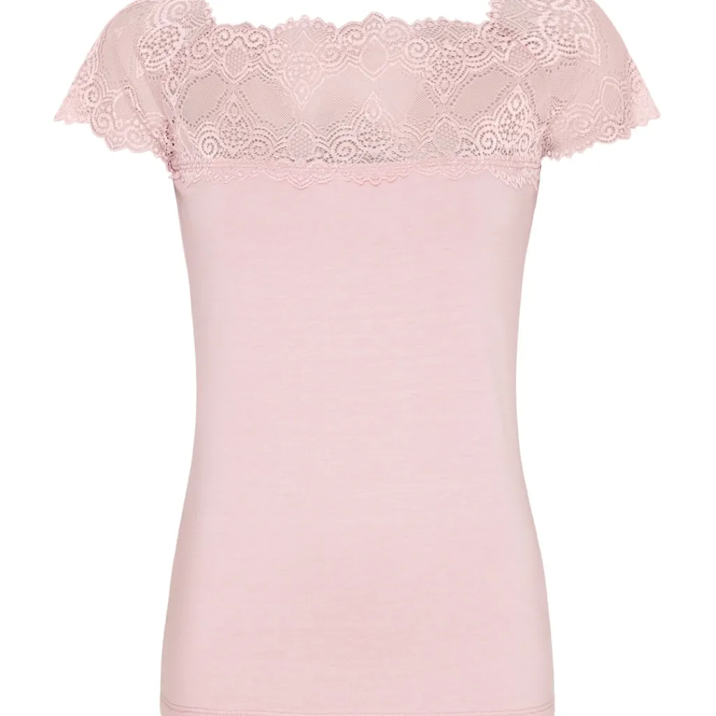 Fin og enkel bluse med korte ærmer og blonder øverst.