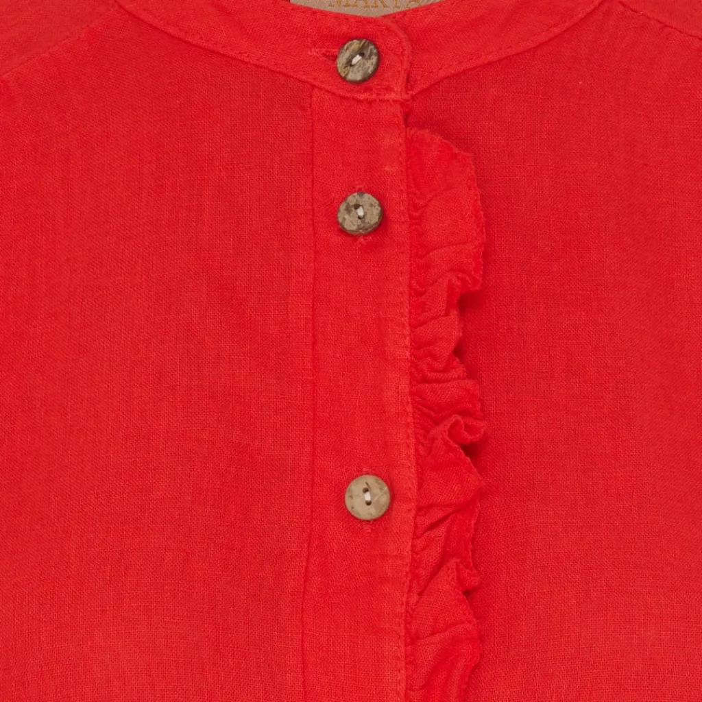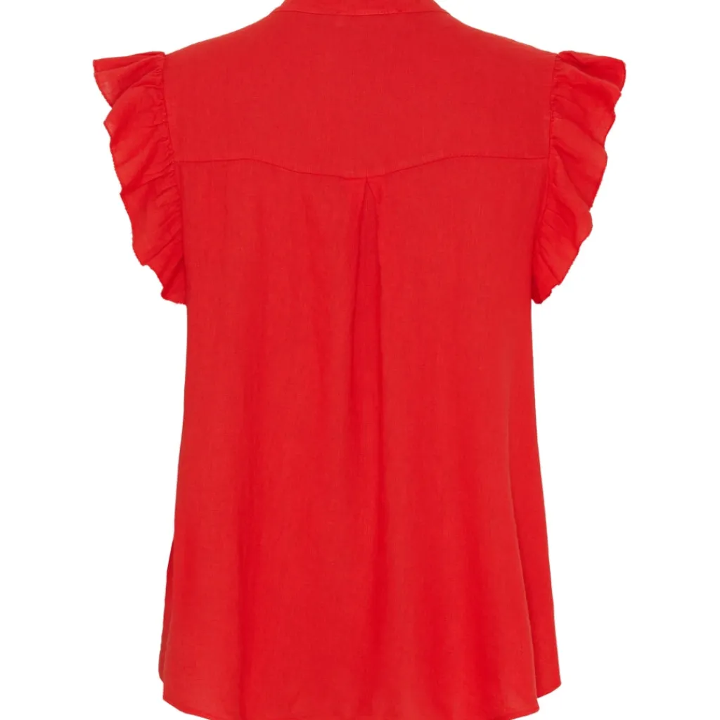 Sød top fra Marta med fin detalje med flæser ved armene. Toppen er i hør og viskose.