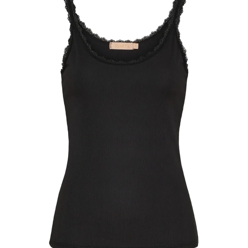 Fin basis ribbet top fra Marta Du Château. Toppen har en fin flæse- og blondekant, og er ideel til at have under sine bluser og skjorter på de kølige dage. Til sommer, brug den for sig selv med en nederdel eller shorts.
