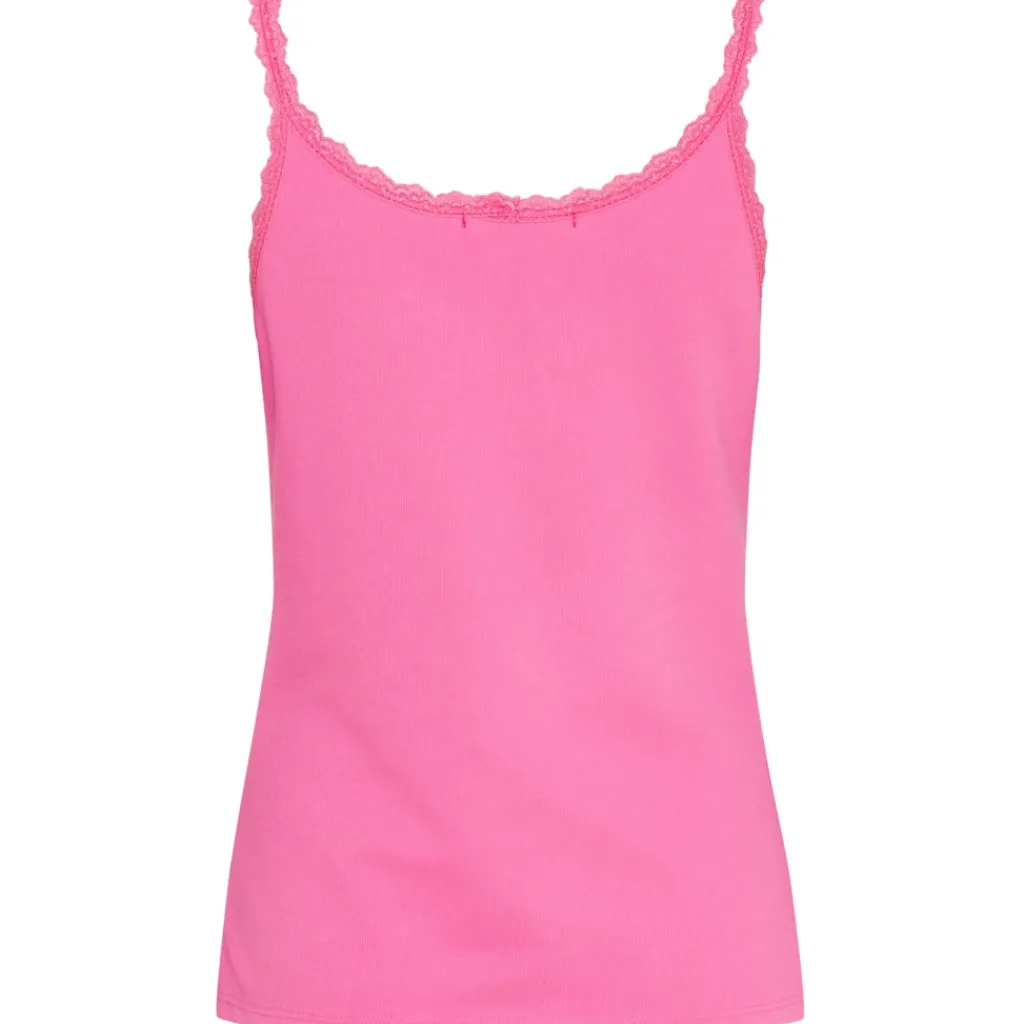 Fin basis ribbet top fra Marta Du Château. Toppen har en fin flæse- og blondekant, og er ideel til at have under sine bluser og skjorter på de kølige dage. Til sommer, brug den for sig selv med en nederdel eller shorts.