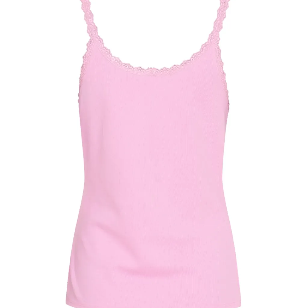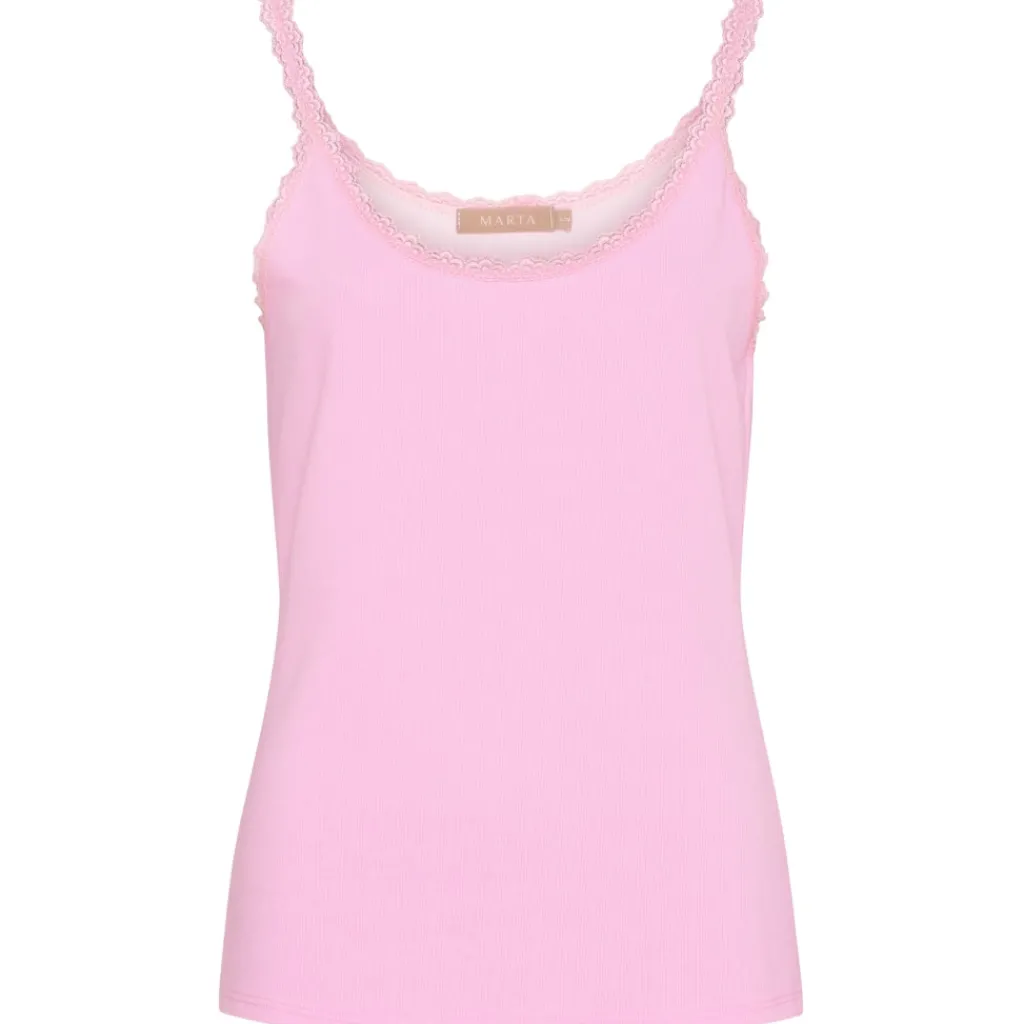 Fin basis ribbet top fra Marta Du Château. Toppen har en fin flæse- og blondekant, og er ideel til at have under sine bluser og skjorter på de kølige dage. Til sommer, brug den for sig selv med en nederdel eller shorts.