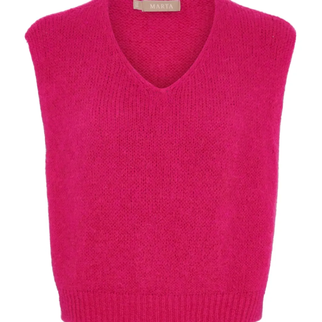 Sej vest med rund hals fra Marta. Vesten kan styles som den er med et par blazerbukser, eller over en langærmet kjole for et sejt lag-på-lag look.