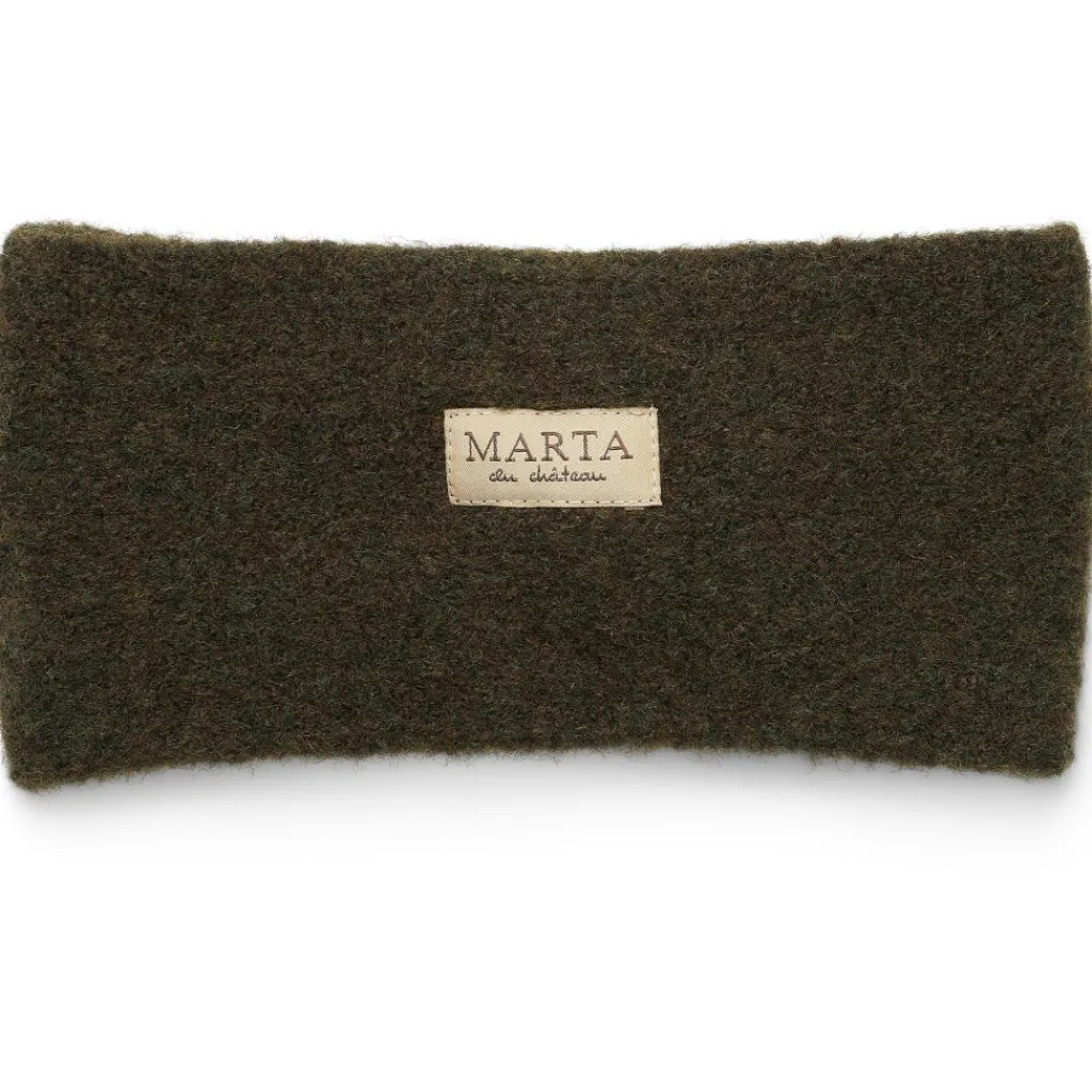 Lækkert strikket pandehånd/ørevarmer med knudedetalje og Marta logo.