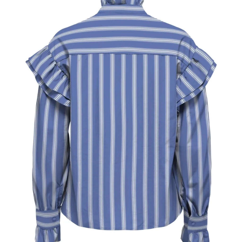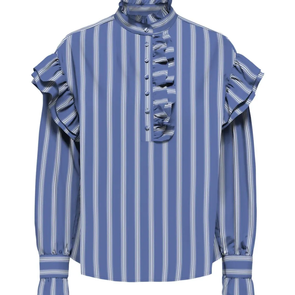 Smuk højhalset bluse med flæser og knappelukning fra Only. Super feminin og elegant og kan bruges til forskellige anledninger.