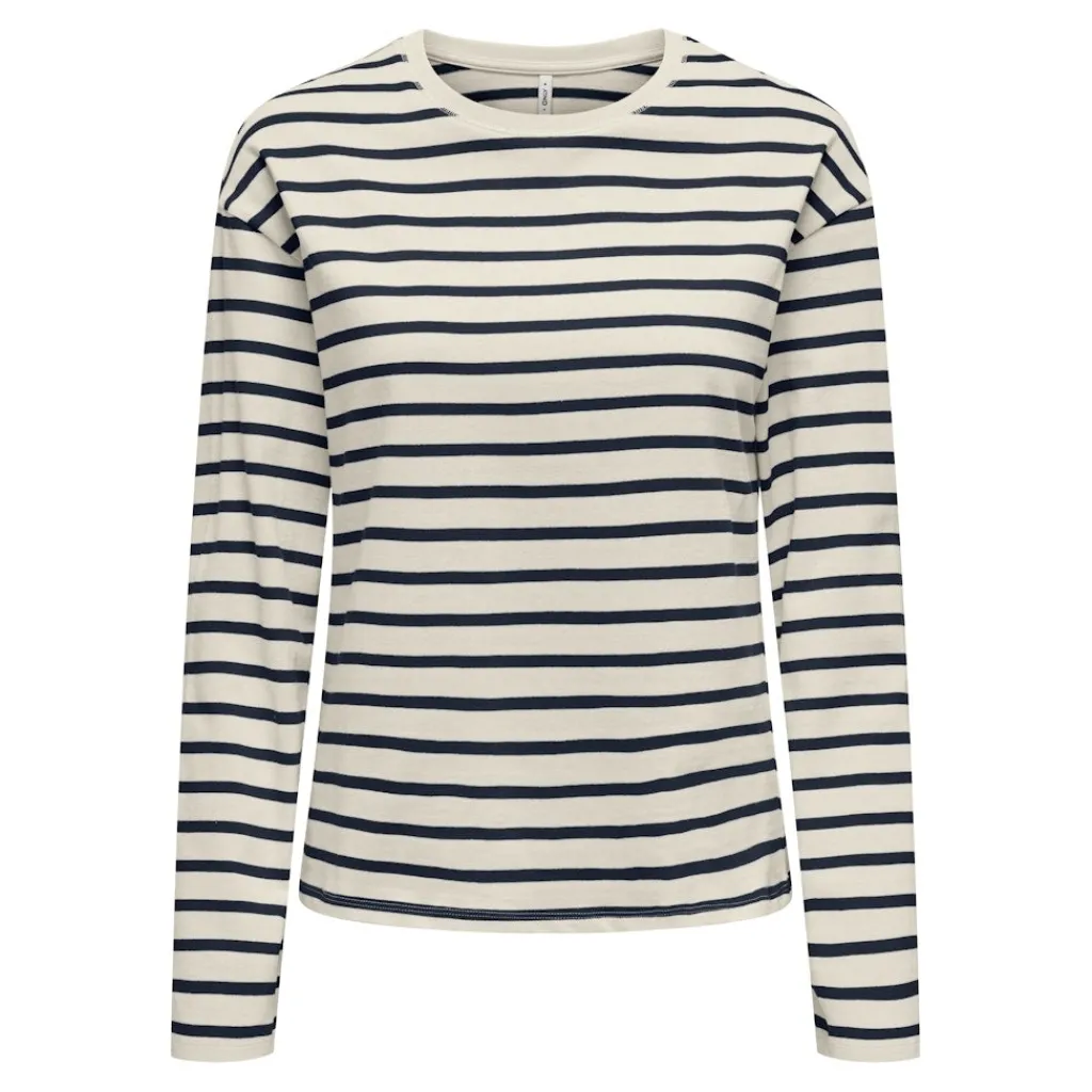 Stribet basis bluse fra Only. Kan nemt styles med en vest under eller under en strik på de køligere dage. En uundværlig style i garderoben efter vores mening.