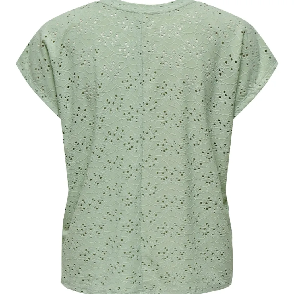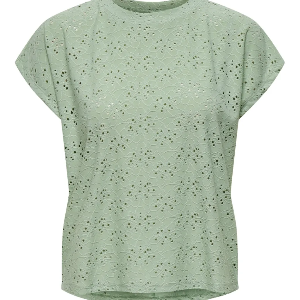Fineste t-shirt med feminine detaljer fra Only. T-shirten er en smule længere bagtil end foran, hvilket giver en super sej effekt. Brug den både til jeans, habitbukser og nederdele – mulighederne er mange.