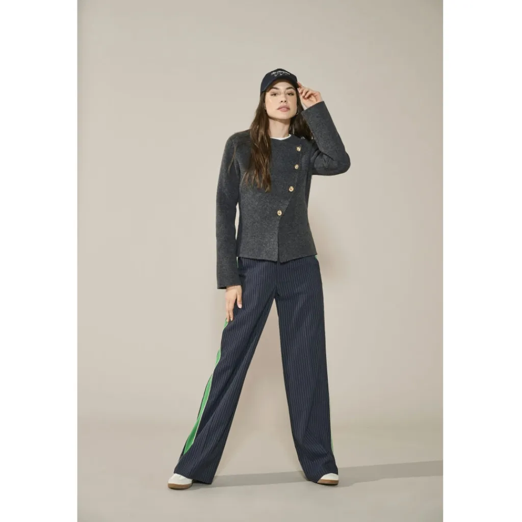 Strikcardigan med rund hals og knaplukning, der har en tætsiddende pasform og lange ærmer. Perfekt til lag-på-lag-look på kølige dage.