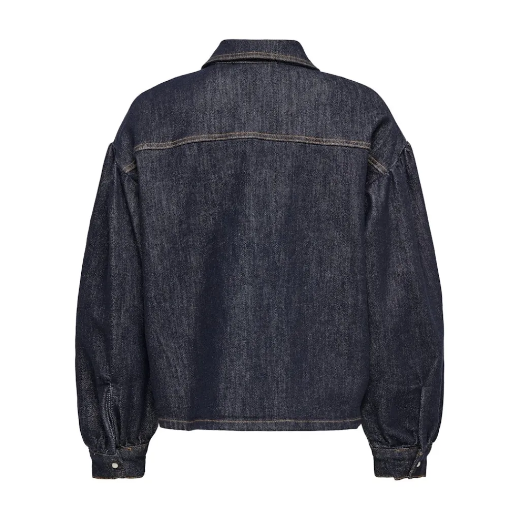 Sejeste denimjakke med lyse syninger fra Only. Jakken har en fin krave og knapper langs fronten, og kan styles med matchende jeans for et komplet denimlook.