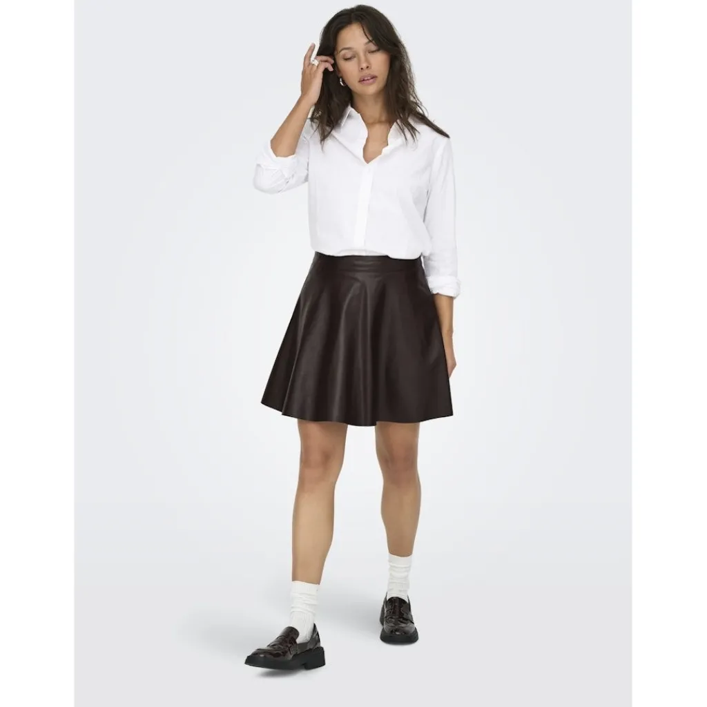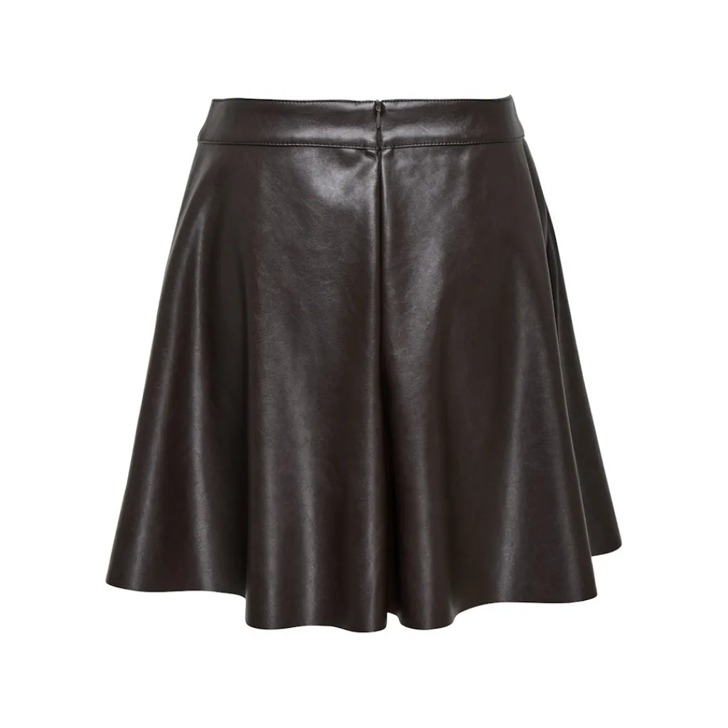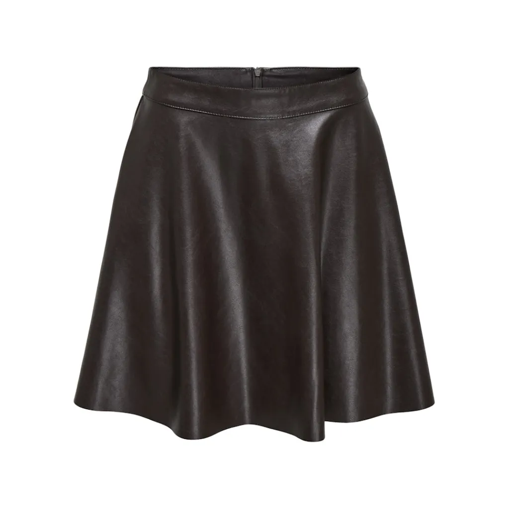 Cool og enkel mini nederdel fra ONLY i imiteret læder. Den har lynlås bagpå. Nederdelen kan styles med en strik og et par støvler for et perfekt og stilfuldt look her til efteråret.