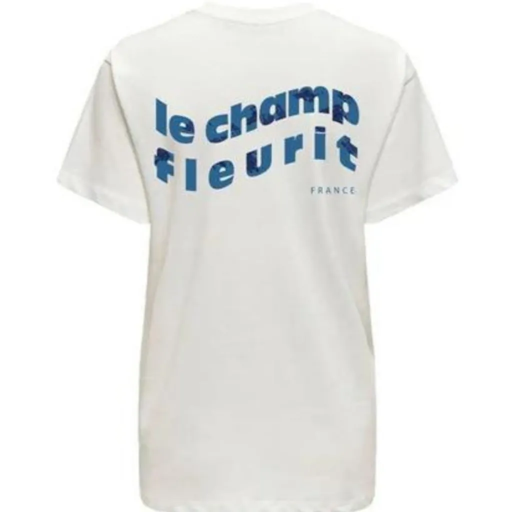 Sej, alsidig t-shirt med print på ryggen fra Only. T-shirten er tidløs og kan styles med hvad end man har i klædeskabet.