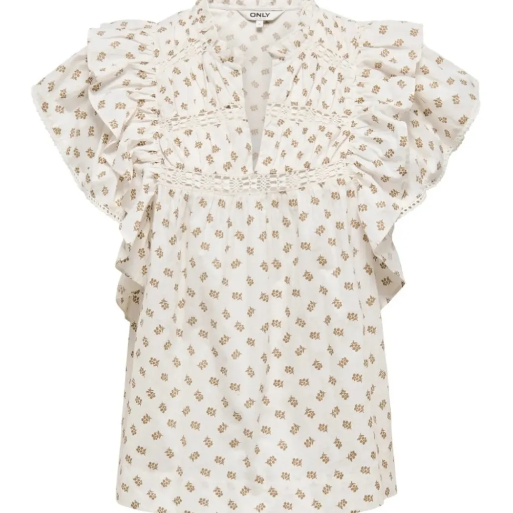 Den smukkeste top fra Pieces i 100% bomuld, med flæsedetaljer og en smukt print. Brug den til hverdag med et par jeans og til festlige anledninger med en nederdel.